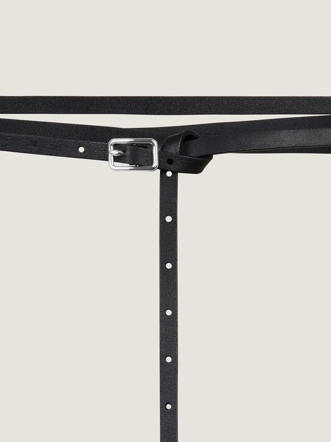 Doppelgürtel aus genarbtem Kalbsleder. Metallschnalle mit silberfarbenem Finish. Lose Enden mit Metallspitzen. Breite: 4 cm.