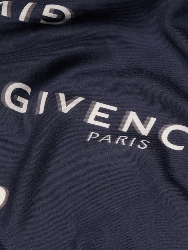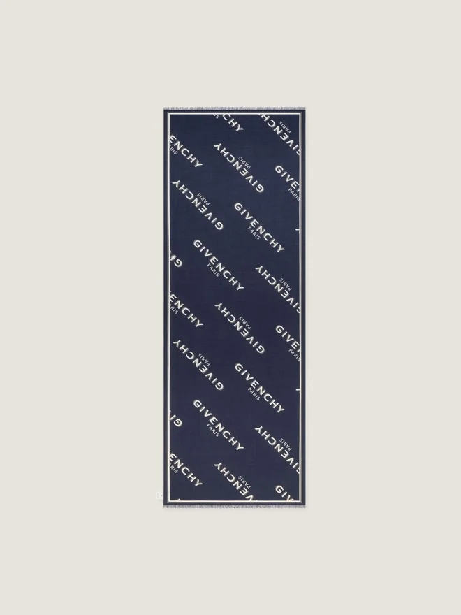 Stola aus Wolle und Seide. Durchgehend mit dem charakteristischen „Shadow“-Signature Print von Givenchy Paris bedruckt. Fransen an den Rändern.