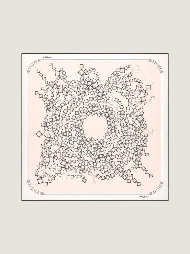 Quadratisches Tuch aus Seidentwill. Dekonstruierter Kristall-Doppeldruck. Handgerollte Kanten mit kontrastierender Givenchy Paris-Signatur.