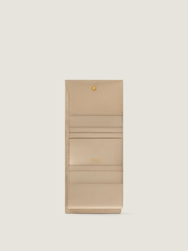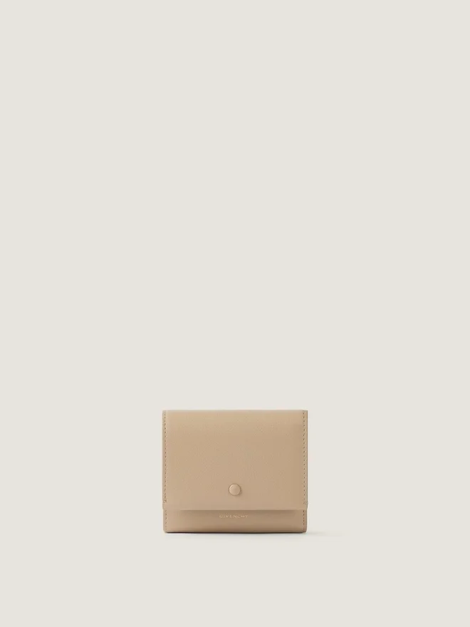 Geldbörse aus genarbtem Leder.Day-Linie.Druckknopfverschluss.Goldene Givenchy-Signatur auf der Vorderseite.Geprägte Givenchy Paris-Signatur auf der Rückseite.Goldene Givenchy-Signatur auf der Innenseite.Mit Leder bezogener Knopf auf der Vorderseite. • Ein Münzfach mit Druckknopf. • Ein flaches Geldscheinfach und fünf Kartenfächer. • Kontrastierendes Innenfutter. Farbe: Naturbeige Material: 100 % Kalbsleder. Futter: 100 % Lammleder, 100 % Viskose.Abmessungen3,9 Zoll x 3,5 Zoll x 1,2 Zoll