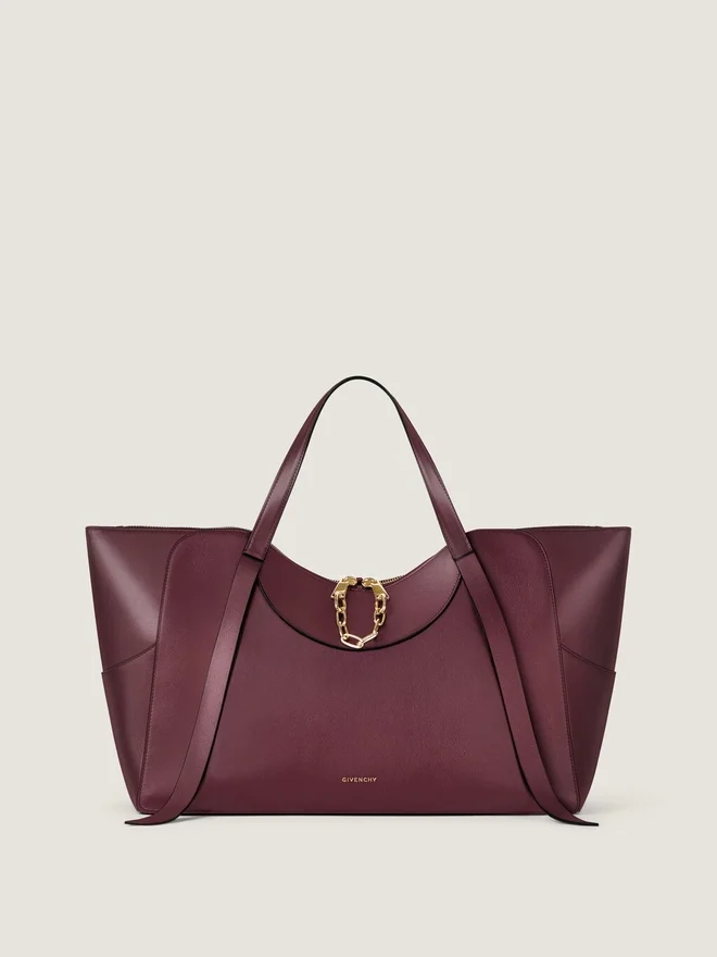 Die Snatch ist eine Studie in Intimität. Ein sinnliches Objekt, das sich ganz natürlich in die Sprache von Sarah Burtons Konfektionsmode einfügt: skulptural, feminin, dem Körper geschmeidig angepasst. Ihre Linien spiegeln den Schnitt einer Jacke, die Form einer Taille, die Kurve eines BHs wider. Die Weichheit des Leders birgt eine stille Spannung: Die Tasche zieht, schnürt, umschließt. • Große Tasche aus weichem, genarbtem Kalbsleder. • Die Snatch-Linie. • Geometrische Form.• Reißverschluss mit eingraviertem Givenchy-Reißverschluss und funktionaler Metallkette. • Ledergriffe zum Tragen in der Hand. • Abnehmbarer Lederriemen mit geprägter Givenchy Paris-Signatur zum Tragen über der Schulter. • Givenchy-Signatur auf der Vorderseite und Givenchy Paris-Signatur auf der Innenseite geprägt. • Metall-Details mit Goldfinish.Handgefertigte Kanten. Kontrastierende Halbmondformen auf der Innenseite. Ein Hauptfach mit einer flachen Innentasche. Metallfüße am Boden. Futter aus Nappaleder.Erhältlich in drei Größen – groß, mittel und klein – kann die Snatch in der Hand, über der Schulter oder quer über den Körper getragen werden (nur kleine Größe). Farbe: Aubergine Material: 100 % Kalbsleder. Innenausstattung: 100 % Kalbsleder. Futter: 58 % Polyurethan, 42 % Polyamid.Abmessungen16,1 Zoll x 9,4 Zoll x 6,7 ZollRiemenlängeMin: 44 cmHerkunftsland:ItalienArtikelnummer:Bb5164B2Dk-542Was passt in Ihre Tasche? Maße: 22,1 cm x 16,5 cm x 14 cm Kartenetui JaBrillenetui JaTaschenschirm JaiPhone 13 JaTaschenbuch JaiPad Pro – Mac Book Air –Was passt in Ihre Tasche? Maße: 30 cm x 20 cm x 13 cm