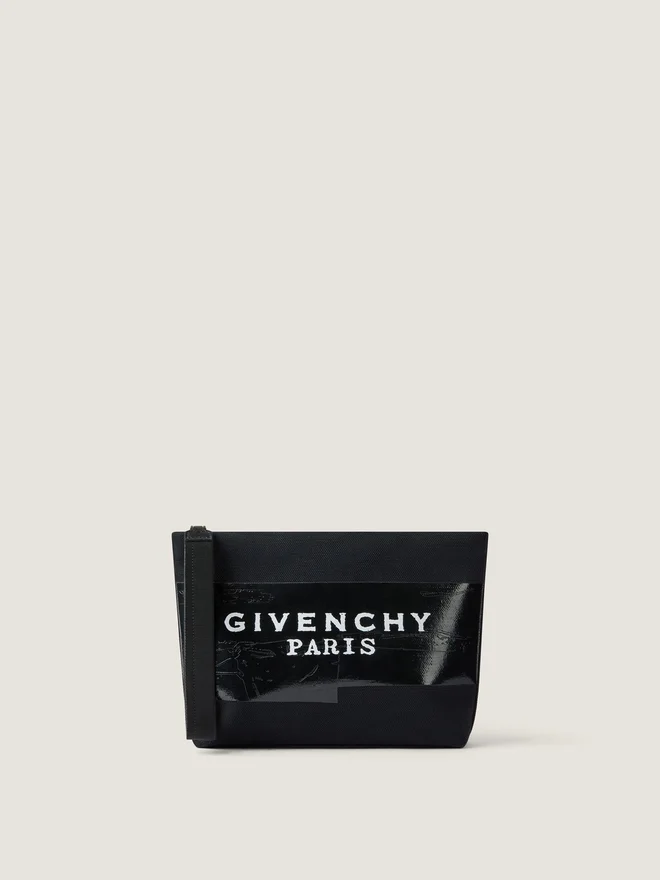 Beutel aus Baumwoll-Canvas.Reißverschluss.Gros-Grain-Riemen mit Lederfutter.3D-Print des Givenchy-Bandes auf der Vorderseite.Givenchy Paris-Aufnäher auf der Innenseite.Ein Hauptfach mit einer flachen Innentasche.D FarbeD SchwarzD MaterialD 58 % Baumwolle, 38 % Leinen, 4 % Polyurethan. Sekundäres Material: 100 % Kalbsleder. Futter: 95 % Baumwolle, 5 % Acryl.D MaßeD 8,9 Zoll x 3,5 Zoll x 2 ZollHerkunftslandItalienProduktcodeBb60Pnb2Cl-001 Pflegehinweise Leder Leder ist ein empfindliches Naturmaterial, das mit größter Sorgfalt behandelt und gepflegt werden sollte. Jedes Lederprodukt ist ein Unikat und entwickelt mit der Zeit eine Patina, die seine Schönheit und seinen Charakter zum Vorschein bringt. Jede Spur ist eine zeitlose Erinnerung, die es zu schätzen gilt. Um die Schönheit Ihres Givenchy-Produkts zu genießen und zu bewahren, empfehlen wir, es in der Originalverpackung und an einem trockenen Ort aufzubewahren, wenn es nicht benutzt wird. So vermeiden Sie den Kontakt mit Feuchtigkeit, Hitze und/oder Lichtquellen, die das Produkt beschädigen könnten. Es ist außerdem ratsam, den Kontakt mit Wasser, Parfüm, Kosmetika, Feuchtigkeitscremes oder anderen flüssigen Produkten zu vermeiden, da diese irreversible Schäden am Leder verursachen können. Canvas Wir empfehlen, Ihr Givenchy-Produkt mit einem weichen, sauberen, leicht angefeuchteten Tuch zu reinigen und chemische Produkte zu vermeiden, die den Stoff beschädigen könnten. Lassen Sie Ihr Givenchy-Produkt an der Luft trocknen und bewahren Sie es in der Originalverpackung an einem trockenen Ort, fern von Feuchtigkeit, auf. Regelmäßige Pflege ist besonders wichtig bei helleren Farbtönen, die besonders schmutzempfindlich sind. Besuchen Sie gerne unsere spezielle Seite oder wenden Sie sich direkt an unsere Givenchy-Teams, wenn Sie weitere Informationen wünschen.
