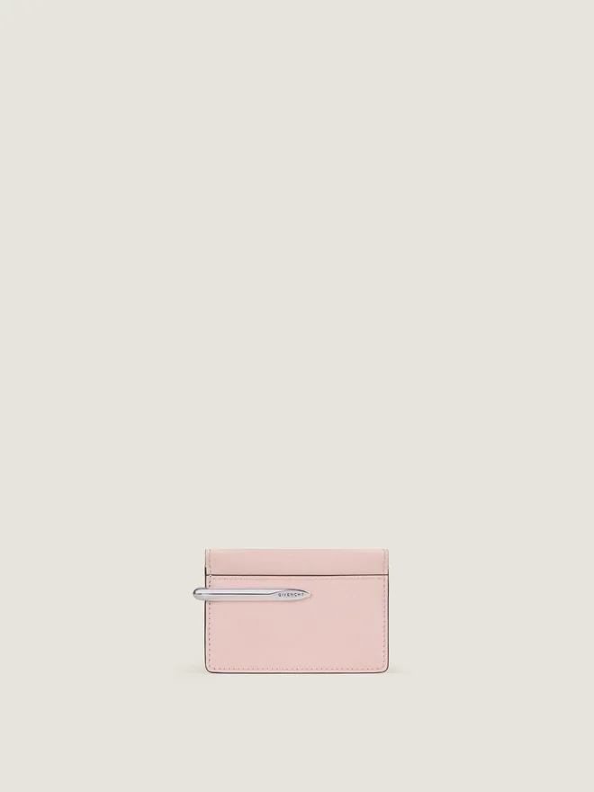 Kartenetui aus Kalbsleder mit natürlicher Narbung und strukturierter Oberfläche. Pinch-Linie. Metallclip mit silberfarbenem Finish und GIVENCHY-Gravur