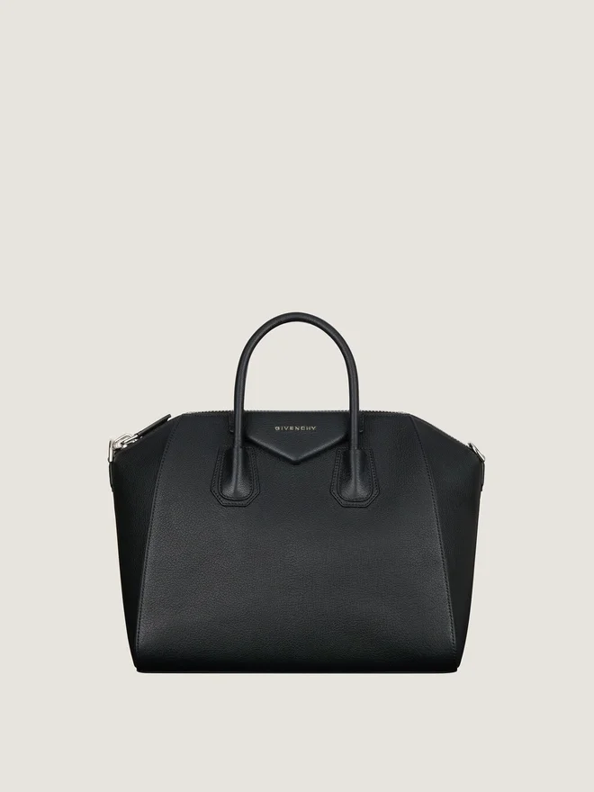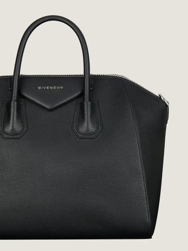 Mittlere Handtasche oder Umhängetasche aus genarbtem Ziegenleder. Antigona-Linie. Reißverschluss mit Givenchy 4G-Reißverschlusszug.