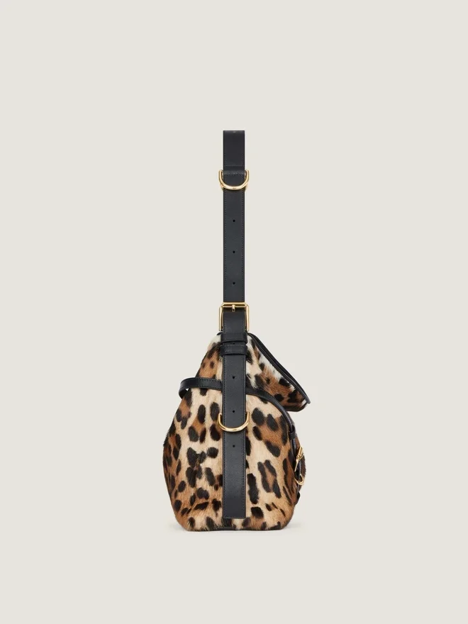 Mittlere Umhängetasche aus Ziegenhaar mit Leopardenmuster.Voyou-Linie.V-förmige, lockere Silhouette und großzügiges Volumen.Verstellbarer Schulterriemen für das Tragen in der Hand, über der Schulter oder quer über den Körper.Givenchy-Signatur aus Metall auf der Vorderseite der Tasche und als Prägung auf der Oberseite der Umhängetasche. Zarte, mit Givenchy gravierte Metallschnallen. Metall-Details in Goldoptik.• Ein Hauptfach und eine Reißverschlusstasche im Inneren. • Futter aus Wildleder. Zusatzmaterial: 100 % Kalbsleder.