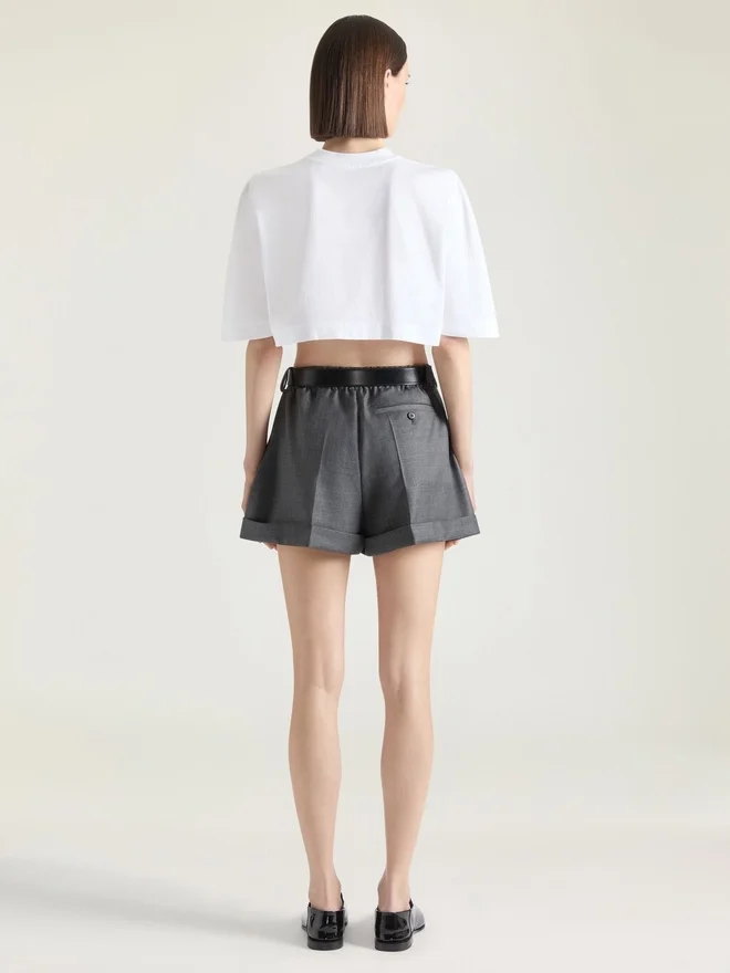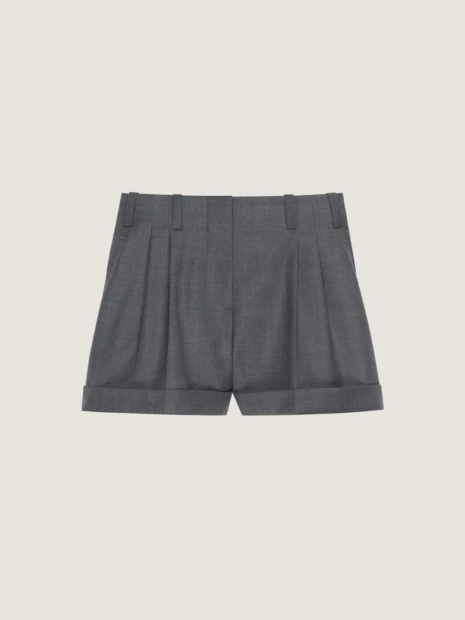 Shorts mit doppelten Falten aus Wolle.Elastischer Bund hinten.Reißverschluss.Zwei Seitentaschen.Eine Gesäßtasche. Das Model ist 1,77 m groß und trägt Größe 36. D FarbeD Grau meliertD MaterialD 100 % Wolle.D FutterD 100 % Baumwolle.D PflegehinweiseD Nicht waschenD Bei maximaler Bügeleisentemperatur (110 °C) ohne Dampf bügelnD Nicht im Wäschetrockner trocknenD Nicht bleichenD Chemische Reinigung mit KohlenwasserstoffD D Futter: 100 % Baumwolle.