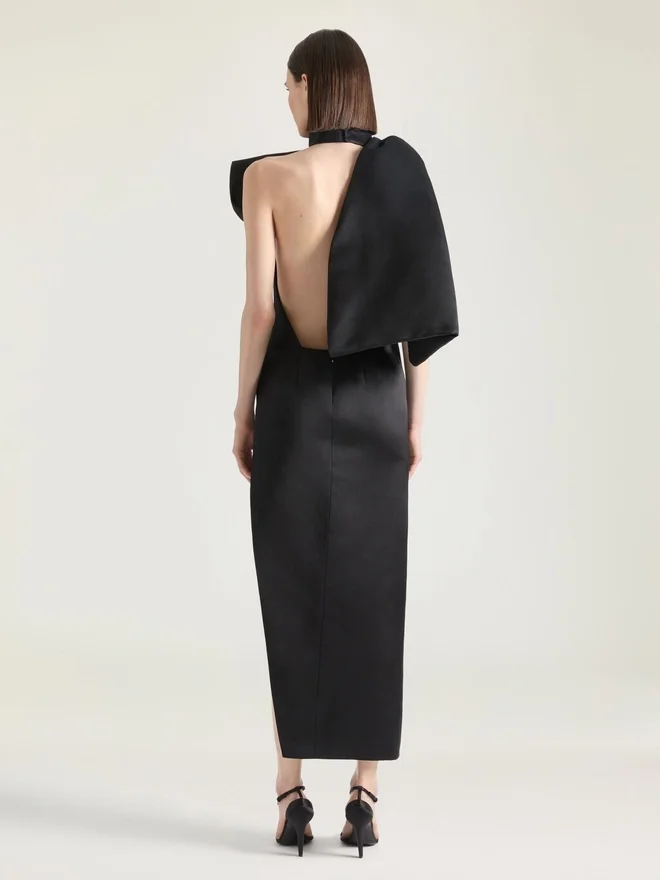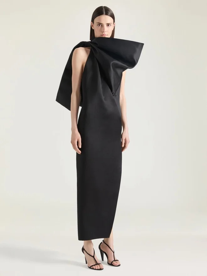 Abendkleid aus Satin mit Schleifendetail