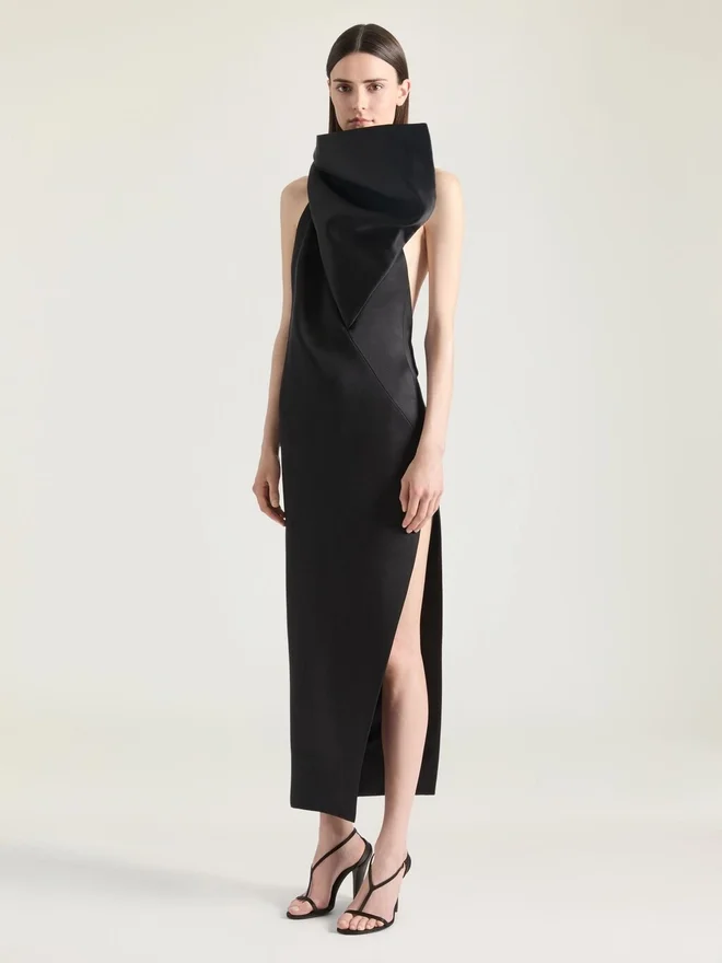 Als typisches Givenchy-Merkmal wird die Schleife als zentrales Detail hervorgehoben, verleiht den Kleidungsstücken Präsenz und Weiblichkeit und bringt die Handwerkskunst des Ateliers durch übertriebene Gesten zum Ausdruck. Langes Abendkleid aus Seidensatin Duchesse. Halter-Ausschnitt. Ausgeprägte Schleifendetails auf der Vorderseite. Offener Rücken. Verdeckter Reißverschluss am Rücken und Hakenverschluss am Hals. Schlitz an der Seite.Das Model ist 1,77 m groß und trägt Größe 36.D FarbeD SchwarzD MaterialD 100 % SeideD PflegeD Nicht waschenBügeln bei maximaler Bügeleisentemperatur (110 °C) Ohne DampfNicht im Wäschetrockner trocknenNicht bleichenChemische Reinigung mit KohlenwasserstoffenHerkunftslandFrankreichProduktcodeBw22Jq1Yg0-001 Pflegehinweise: In unseren Werkstätten entwerfen wir mutig und kreativ einzigartige Kleidungsstücke, die aus hochwertigen Materialien gefertigt sind. Um den Glanz Ihres Givenchy-Produkts zu bewahren, empfehlen wir, es in einem Staubbeutel aus Baumwolle an einem trockenen, kühlen Ort aufzubewahren. Für die meisten unserer Produkte wird eine chemische Reinigung empfohlen. Bitte befolgen Sie unbedingt die Pflegehinweise auf dem Etikett Ihres Artikels. Besuchen Sie gerne unsere spezielle Seite oder wenden Sie sich direkt an unsere Givenchy-Teams, wenn Sie weitere Informationen wünschen.Nicht waschenBei maximaler Bügeleisentemperatur (110 °C) ohne Dampf bügelnNicht im Wäschetrockner trocknenNicht bleichenChemische Reinigung mit Kohlenwasserstoffen
