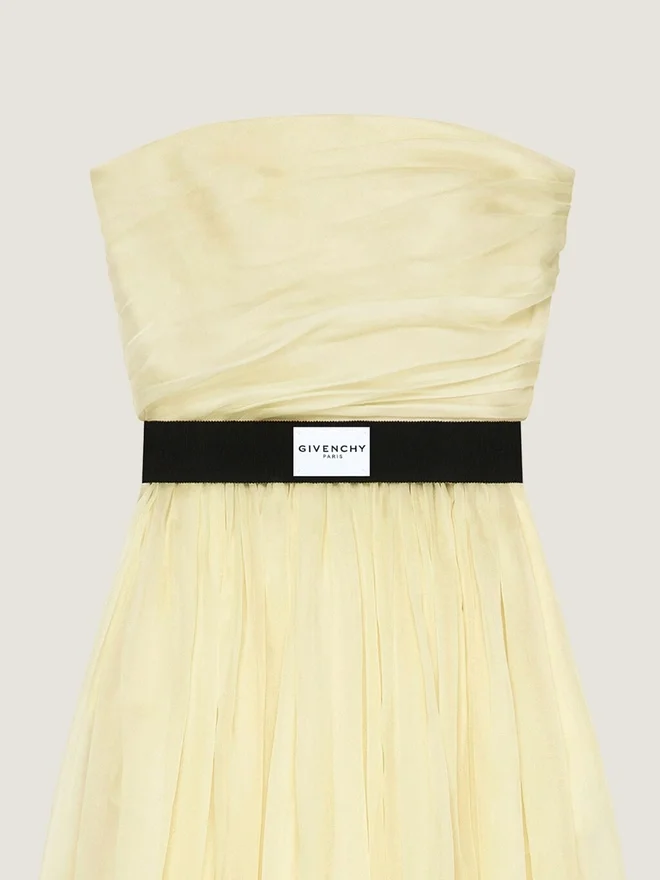 Als Givenchy-Klassiker wird das Bustier in verschiedenen Silhouetten neu interpretiert, wobei strukturelle Couture-Techniken zum Einsatz kommen, um die weibliche Form zu betonen. Langes Bustier-Abendkleid aus Organza. Drapiert. Integriertes Korsett.Nicht abnehmbarer Grosgrain-Gürtel mit gesticktem Givenchy-Label. Verdeckter Reißverschluss an der Seite. Das Model ist 1,77 m groß und trägt Größe 36. D FarbeD ButterD MaterialD 100 % Seide.D ZusatzmaterialD 76 % Polyamid, 24 % Elasthan.D PflegehinweiseD Nicht waschenD Bügeln bei maximaler Bügeleisentemperatur (110 °C) ohne DampfD Nicht im Wäschetrockner trocknenD Nicht bleichenD Chemische Reinigung mit KohlenwasserstoffenD Zusatzmaterial: 76 % Polyamid, 24 % Elasthan.PflegehinweiseNicht waschenBei maximaler Bügeleisentemperatur (110 °C) bügeln Ohne DampfNicht im Wäschetrockner trocknenNicht bleichenChemische Reinigung mit KohlenwasserstoffenHerkunftslandFrankreichProduktcodeBw22Fd1Yj3-155 Pflegehinweise: In unseren Werkstätten entwerfen wir mutig und kreativ einzigartige Kleidungsstücke, die aus hochwertigen Materialien gefertigt sind. Um die Schönheit Ihres Givenchy-Produkts zu bewahren, empfehlen wir, es in einem Staubbeutel aus Baumwolle an einem trockenen, kühlen Ort aufzubewahren. Für die meisten unserer Produkte wird eine chemische Reinigung empfohlen. Bitte beachten Sie unbedingt die Pflegehinweise auf dem Etikett Ihres Artikels. Besuchen Sie gerne unsere spezielle Seite oder wenden Sie sich direkt an unsere Givenchy-Teams, wenn Sie weitere Informationen wünschen.Nicht waschenBei maximaler Bügeleisentemperatur (110 °C) ohne Dampf bügelnNicht im Wäschetrockner trocknenNicht bleichenChemische Reinigung mit Kohlenwasserstoffen