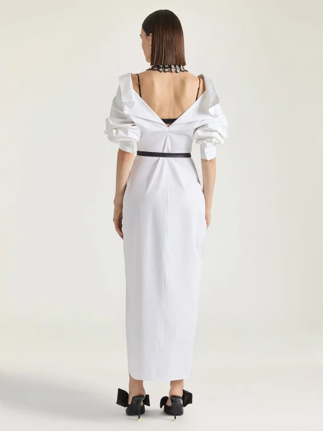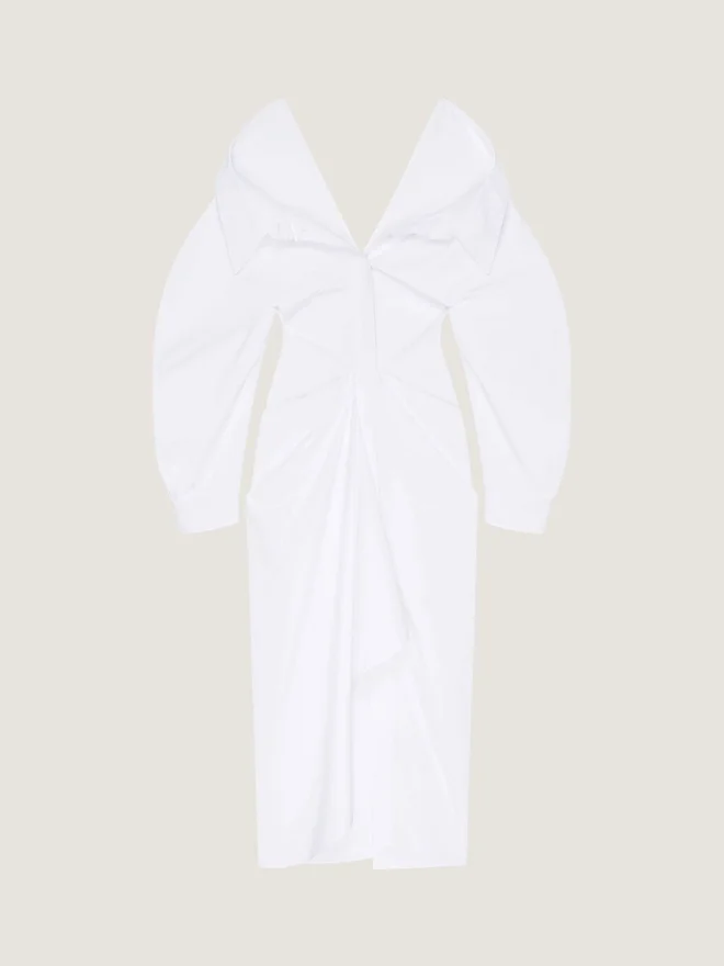 Eine Silhouette, inspiriert von der Geste, eine Lederjacke über eine Schaufensterpuppe zu drapieren. Die Stoffe sind sinnlich verdreht und um den Körper gewickelt, während Schlitze und Taschen auf der Vorderseite für Bewegung und Ausdruck sorgen. Langes Hemdkleid mit langen Ärmeln aus Baumwollpopeline. Schlitz am Rücken.• Vorne drapiert. • Verdeckter Knopfverschluss vorne. • Zwei Vordertaschen. • Das Model ist 1,77 m groß und trägt Größe 36. • Farbe • Weiß • Material • 100 % Baumwolle.PflegehinweiseNicht waschenBei maximaler Bügeleisentemperatur (110 °C) ohne Dampf bügelnNicht im Wäschetrockner trocknenNicht bleichenProfessionelle chemische Reinigung mit Tetrachlorethylen und Kohlenwasserstoffen, sehr schonende BehandlungHerkunftslandItalienProduktcodeBw22T71642-100 Pflegehinweise: Unsere Ateliers entwerfen mutig und kreativ einzigartige Kleidungsstücke aus hochwertigen Materialien.Um den Glanz Ihres Givenchy-Produkts zu bewahren, empfehlen wir, es in einem Staubbeutel aus Baumwolle an einem trockenen, kühlen Ort aufzubewahren. Für die meisten unserer Produkte wird eine chemische Reinigung empfohlen. Bitte beachten Sie unbedingt die Pflegehinweise auf dem Etikett Ihres Artikels. Besuchen Sie gerne unsere spezielle Seite oder wenden Sie sich direkt an unsere Givenchy-Teams, wenn Sie weitere Informationen wünschen.Nicht waschenBei maximaler Bügeleisentemperatur (110 °C) ohne Dampf bügelnNicht im Wäschetrockner trocknenNicht bleichenProfessionelle chemische Reinigung mit Tetrachlorethylen und Kohlenwasserstoffen, sehr schonende Behandlung