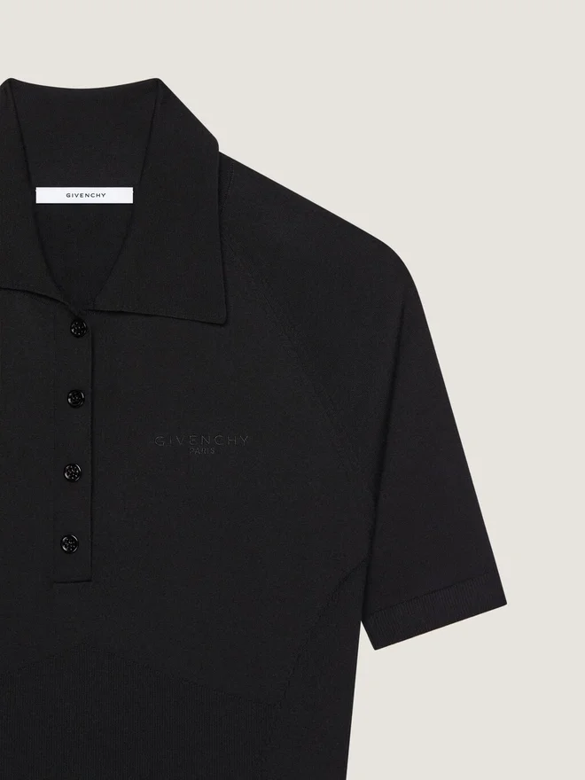 Das Givenchy Paris-Logo greift Vintage-College-Referenzen auf und interpretiert klassische Schriftzüge in subtilen, kontrastreichen und gestickten Applikationen neu. Midi-Kleid mit kurzen Ärmeln aus Strick mit Second-Skin-Effekt. Polo-Kragen mit Knopfleiste. Kleine, farblich abgestimmte „Givenchy Paris“-Signatur auf der Brust gestickt.• Slim Fit. • Das Model ist 1,77 m groß und trägt Größe S. Farbe Schwarz Material 87 % Wolle, 10 % Polyamid, 3 % Elasthan.PflegehinweiseNicht waschenBei maximaler Bügeleisentemperatur (110 °C) bügeln Ohne DampfNicht im Wäschetrockner trocknenNicht bleichenChemische Reinigung mit KohlenwasserstoffenHerkunftslandItalienProduktcodeBw22Vp4Zu3-001 Pflegehinweise: In unseren Werkstätten entwerfen wir mutig und kreativ einzigartige Kleidungsstücke, die aus hochwertigen Materialien gefertigt sind. Um den Glanz Ihres Givenchy-Produkts zu bewahren, empfehlen wir, es in einem Staubbeutel aus Baumwolle an einem trockenen, kühlen Ort aufzubewahren. Für die meisten unserer Produkte wird eine chemische Reinigung empfohlen. Bitte beachten Sie unbedingt die Pflegehinweise auf dem Etikett Ihres Artikels. Besuchen Sie gerne unsere spezielle Seite oder wenden Sie sich direkt an unsere Givenchy-Teams, wenn Sie weitere Informationen wünschen.Nicht waschenBei maximaler Bügeleisentemperatur (110 °C) ohne Dampf bügelnNicht im Wäschetrockner trocknenNicht bleichenChemische Reinigung mit Kohlenwasserstoffen