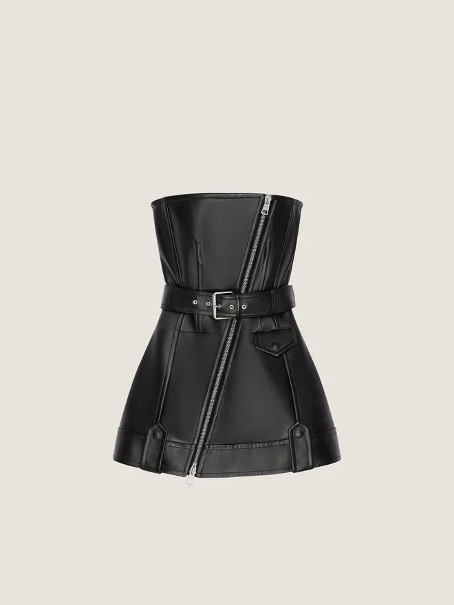 Als Givenchy-Klassiker wird das Bustier in verschiedenen Silhouetten neu interpretiert, wobei strukturelle Couture-Techniken zum Einsatz kommen, um die weibliche Form zu betonen. Mini-Bustier-Biker-Kleid aus Lammleder. Schräg verlaufender Reißverschluss vorne. Abnehmbarer Gürtel.• Eine Vordertasche. • Das Model ist 1,77 m groß und trägt Größe 36. D FarbeD SchwarzD MaterialzusammensetzungD 100 % Lammleder. Sekundäres Material: 100 % Viskose.D PflegehinweiseNicht waschenNicht bügelnNicht im Wäschetrockner trocknenNicht bleichenNicht chemisch reinigenHerkunftslandItalienArtikelnummerBw22Rb61Y7-001