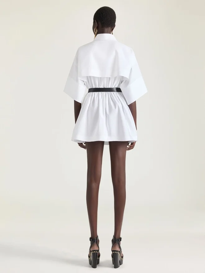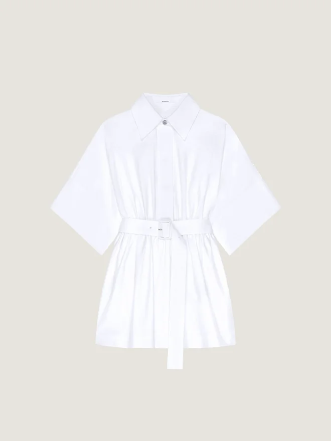 Mini-Hemdkleid mit kurzen Ärmeln aus Baumwollpopeline.Klassischer Kragen.Knopfverschluss.Silberfarbener Knopf mit Givenchy-Gravur.Cape-Detail am Rücken.Taillierte Plissee-Taille mit abnehmbarem Gürtel.Das Model ist 1,77 m groß und trägt Größe 36.D FarbeD WeißD MaterialD 100 % BaumwolleD PflegeD Nicht waschenBügeln bei maximaler Bügeleisentemperatur (110 °C) Ohne DampfNicht im Wäschetrockner trocknenNicht bleichenChemische Reinigung mit KohlenwasserstoffenHerkunftslandItalienProduktcodeBw22Ne1634-100 Pflegehinweise: In unseren Werkstätten entwerfen wir mutig und kreativ einzigartige Kleidungsstücke, die aus hochwertigen Materialien gefertigt sind. Um den Glanz Ihres Givenchy-Produkts zu bewahren, empfehlen wir, es in einem Baumwoll-Staubbeutel an einem trockenen, kühlen Ort aufzubewahren. Für die meisten unserer Produkte wird eine chemische Reinigung empfohlen. Bitte befolgen Sie unbedingt die Pflegehinweise auf dem Etikett Ihres Artikels. Besuchen Sie gerne unsere spezielle Seite oder wenden Sie sich direkt an unsere Givenchy-Teams, wenn Sie weitere Informationen wünschen.Nicht waschenBei maximaler Bügeleisentemperatur (110 °C) ohne Dampf bügelnNicht im Wäschetrockner trocknenNicht bleichenChemische Reinigung mit Kohlenwasserstoffen