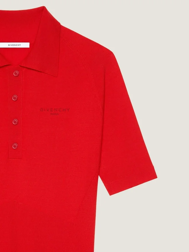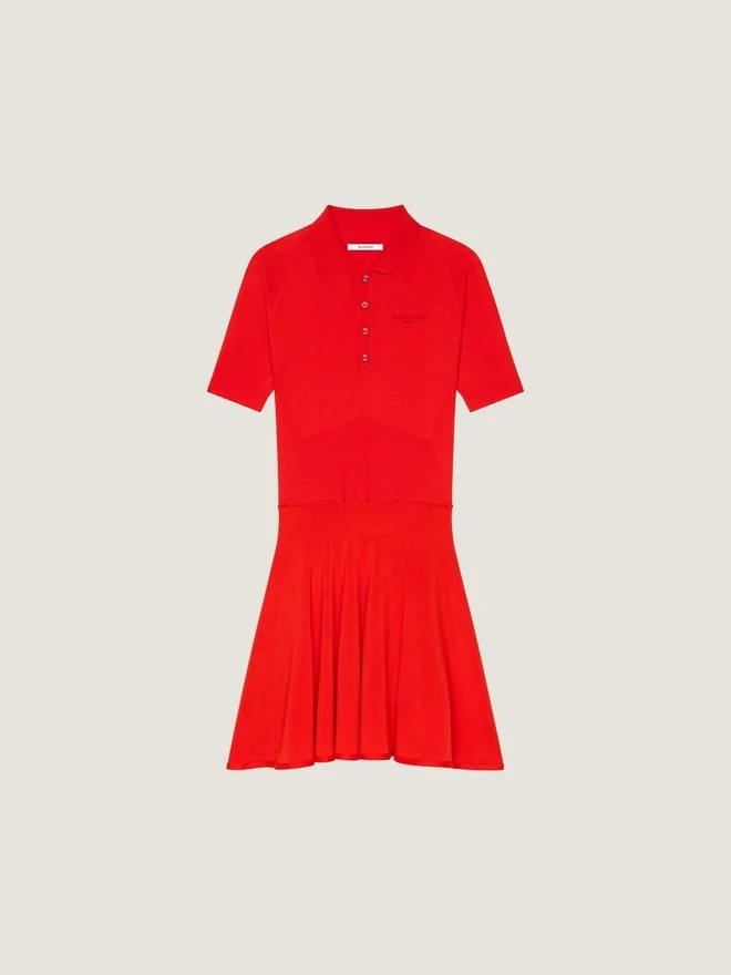Das Givenchy Paris-Logo greift Vintage-College-Referenzen auf und interpretiert klassische Schriftzüge in subtilen, kontrastreichen und gestickten Applikationen neu. Minikleid mit kurzen Ärmeln aus Strick im Second-Skin-Look. Polo-Kragen mit Knopfleiste. Kleine, farblich abgestimmte Givenchy Paris-Signatur auf der Brust gestickt.• Ausgestellter Rock. • Das Model ist 1,77 m groß und trägt Größe S. D FarbeD MohnrotD D MaterialzusammensetzungD 87 % Wolle, 10 % Polyamid, 3 % Elasthan.D PflegehinweiseNicht waschenBei maximaler Bügeleisentemperatur (110 °C) bügeln Ohne DampfNicht im Wäschetrockner trocknenNicht bleichenChemische Reinigung mit KohlenwasserstoffenHerkunftslandItalienProduktcodeBw22Y64Zu3-626 Pflegehinweise: In unseren Werkstätten entwerfen wir mutig und kreativ einzigartige Kleidungsstücke, die aus hochwertigen Materialien gefertigt sind. Um den Glanz Ihres Givenchy-Produkts zu bewahren, empfehlen wir, es in einem Staubbeutel aus Baumwolle an einem trockenen, kühlen Ort aufzubewahren. Für die meisten unserer Produkte wird eine chemische Reinigung empfohlen. Bitte beachten Sie unbedingt die Pflegehinweise auf dem Etikett Ihres Artikels. Besuchen Sie gerne unsere spezielle Seite oder wenden Sie sich direkt an unsere Givenchy-Teams, wenn Sie weitere Informationen wünschen.Nicht waschenBei maximaler Bügeleisentemperatur (110 °C) ohne Dampf bügelnNicht im Wäschetrockner trocknenNicht bleichenChemische Reinigung mit Kohlenwasserstoffen