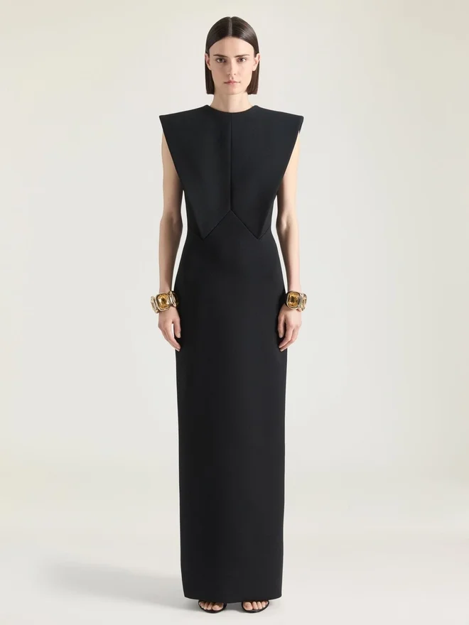 Langes, ärmelloses Abendkleid aus Wollkrepp.Rundhalsausschnitt.Verdeckter Reißverschluss am Rücken.Strukturierte Details.Das Model ist 1,77 m groß und trägt Größe 36.D FarbeD SchwarzD MaterialD 90 % Wolle, 7 % Polyamid, 3 % Elasthan.D FutterD 100 % Polyester.D PflegehinweiseD Nicht waschenD Bei maximaler Bügeleisentemperatur (110 °C) ohne Dampf bügelnD Nicht im Wäschetrockner trocknenD Nicht bleichenD Chemische Reinigung mit KohlenwasserstoffenD Futter: 100 % Polyester.PflegehinweiseNicht waschenBei maximaler Bügeleisentemperatur (110 °C) ohne Dampf bügelnNicht im Wäschetrockner trocknenNicht bleichenProfessionelle chemische Reinigung mit Tetrachlorethylen und Kohlenwasserstoffen, sehr schonende BehandlungHerkunftslandItalienProduktcodeBw22Lg167R-001 Pflegehinweise: In unseren Werkstätten entwerfen wir mutig und kreativ einzigartige Kleidungsstücke aus hochwertigen Materialien.Um den Glanz Ihres Givenchy-Produkts zu bewahren, empfehlen wir, es in einem Staubbeutel aus Baumwolle an einem trockenen, kühlen Ort aufzubewahren. Für die meisten unserer Produkte wird eine chemische Reinigung empfohlen. Bitte beachten Sie unbedingt die Pflegehinweise auf dem Etikett Ihres Artikels. Besuchen Sie gerne unsere spezielle Seite oder wenden Sie sich direkt an unsere Givenchy-Teams, wenn Sie weitere Informationen wünschen.Nicht waschenBei maximaler Bügeleisentemperatur (110 °C) ohne Dampf bügelnNicht im Wäschetrockner trocknenNicht bleichenProfessionelle chemische Reinigung mit Tetrachlorethylen und Kohlenwasserstoffen, sehr schonende Behandlung