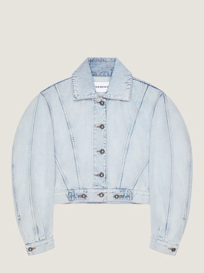 Übertriebene Volumen, überarbeitete Muster und umgekehrte Nähte formen die Cocoon-Silhouette. Jacke aus hellblauem Denim. Klassischer Kragen. Back-to-Front-Effekt. Knopfverschluss vorne und hinten. Geknöpfte Manschetten.• Knöpfe mit Givenchy-Gravur. • Zwei Pattentaschen auf der Rückseite. • Couture-Nähte für ein kokonartiges Volumen.- Das Model ist 1,77 m groß und trägt Größe 36. Ohne DampfNicht im Wäschetrockner trocknenNicht bleichenChemische Reinigung mit KohlenwasserstoffenHerkunftslandItalienProduktcodeBw00Uh517P-452 Pflegehinweise: In unseren Werkstätten entwerfen wir mutig und kreativ einzigartige Kleidungsstücke, die aus hochwertigen Materialien gefertigt sind. Um die Schönheit Ihres Givenchy-Produkts zu bewahren, empfehlen wir, es in einem Baumwoll-Staubbeutel an einem trockenen, kühlen Ort aufzubewahren. Für die meisten unserer Produkte wird eine chemische Reinigung empfohlen. Bitte beachten Sie unbedingt die Pflegehinweise auf dem Etikett Ihres Artikels. Besuchen Sie gerne unsere spezielle Seite oder wenden Sie sich direkt an unsere Givenchy-Teams, wenn Sie weitere Informationen wünschen.Nicht waschenBei maximaler Bügeleisentemperatur (110 °C) ohne Dampf bügelnNicht im Wäschetrockner trocknenNicht bleichenChemische Reinigung mit Kohlenwasserstoffen