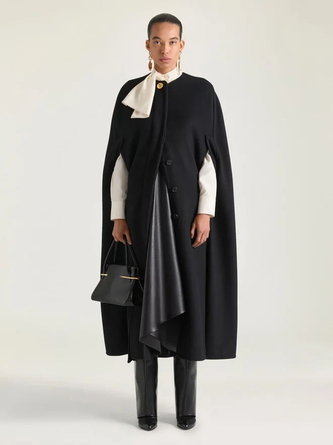 Langes Cape aus doppelseitigem Woll- und Kaschmirstoff.Rundhalsausschnitt.Verdeckter Knopfverschluss.Goldene Knöpfe mit GIVENCHY-Gravur.Armausschnitte.Das Model ist 1,77 m groß und trägt Größe 36.D FarbeD Schwarz/GrauD MaterialD 70 % Wolle, 30 % KaschmirD PflegeD Nicht waschenD Bügeln bei maximaler Bügeleisentemperatur (110 °C) ohne DampfD Nicht im Wäschetrockner trocknenD Nicht bleichenD Professionelle chemische ReinigungD AnmerkungenD Das Modell ist 1,77 m groß und trägt Größe 36.D FarbeD Schwarz/GrauD MaterialD 70 % Wolle, 30 % KaschmirD PflegeD Nicht waschenD Bügeln bei maximaler Bügeleisentemperatur (110 °C) ohne DampfD Nicht im Wäschetrockner trocknenD Nicht bleichenD Professionelle chemische ReinigungD AnmerkungenD Das ModellPflegehinweiseNicht waschenBei maximaler Bügeleisentemperatur (110 °C) ohne Dampf bügelnNicht im Wäschetrockner trocknenNicht bleichenProfessionelle chemische Reinigung mit Tetrachlorethylen und Kohlenwasserstoffen, sehr schonende BehandlungHerkunftslandItalienProduktcodeBw00Tm151K-002 Pflegehinweise: In unseren Werkstätten entwerfen wir mutig und kreativ einzigartige Kleidungsstücke aus hochwertigen Materialien.Um den Glanz Ihres Givenchy-Produkts zu bewahren, empfehlen wir, es in einem Staubbeutel aus Baumwolle an einem trockenen, kühlen Ort aufzubewahren. Für die meisten unserer Produkte wird eine chemische Reinigung empfohlen. Bitte beachten Sie unbedingt die Pflegehinweise auf dem Etikett Ihres Artikels. Besuchen Sie gerne unsere spezielle Seite oder wenden Sie sich direkt an unsere Givenchy-Teams, wenn Sie weitere Informationen wünschen.Nicht waschenBei maximaler Bügeleisentemperatur (110 °C) ohne Dampf bügelnNicht im Wäschetrockner trocknenNicht bleichenProfessionelle chemische Reinigung mit Tetrachlorethylen und Kohlenwasserstoffen, sehr schonende Behandlung