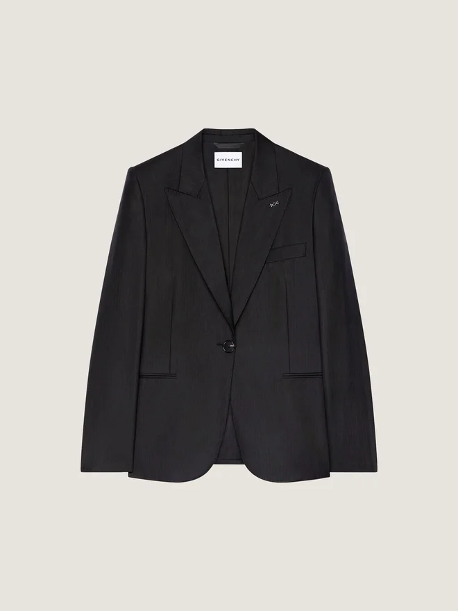 Sarah Burton interpretiert die Schneiderkunst im Givenchy-Atelier neu und schneidert Damenmodelle mit der Präzision der Herrenmode, um die feminine Silhouette zu betonen.Jacke aus Wolle mit Nadelstreifen. Spitzrevers. Ziernähte am Kragen. Einreihig. Geknöpfte Manschetten. Eine Brusttasche. Zwei Vordertaschen. Satin-Futter.Das Model ist 1,77 m groß und trägt Größe 36.D FarbeD Grau meliertD MaterialD 100 % Wolle.D FutterD 100 % Polyester.D D PflegehinweiseD Nicht waschenD Bügeln bei maximaler Bügeleisentemperatur (110 °C)D Futter: 100 % Polyester.D D PflegehinweiseD Nicht waschenD Bügeln bei maximaler Bügeleisentemperatur (110 °C)D Futter: 100 % Polyester.D D PflegehinweiseD Nicht waschenD Bügeln bei maximaler Bügeleisentemperatur (110 °C)D Futter: 100 % Polyester.D Futter: 100 % Polyester.