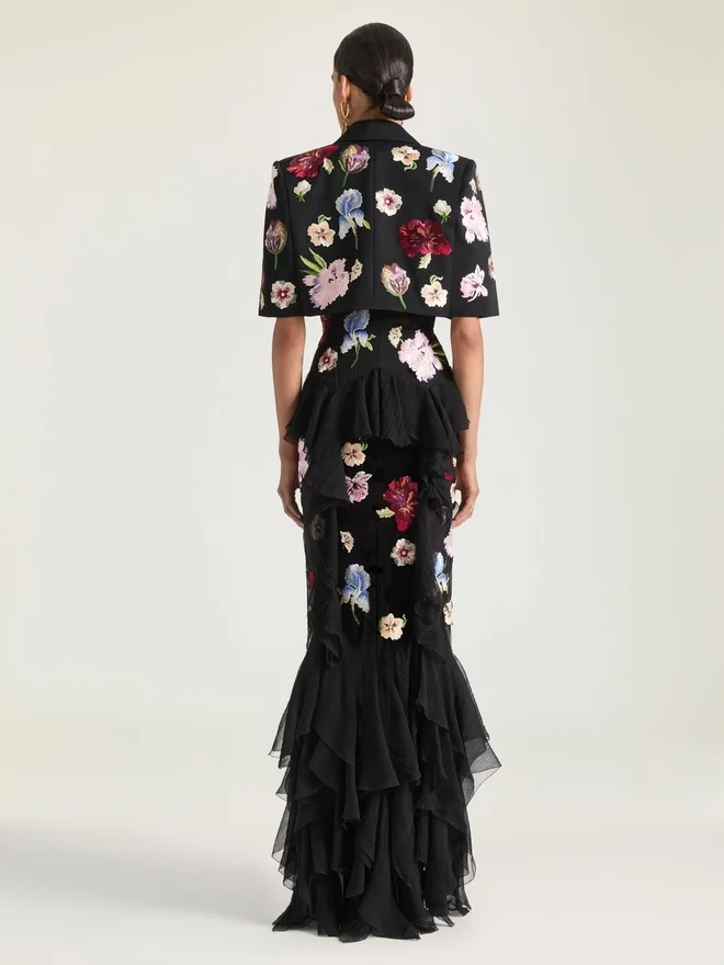 Die Silhouetten sind von blühenden Blumen inspiriert, mit Popelinehemden, die wie Blütenblätter von den Schultern gleiten, und Kleidern, die sich durch gerüschte Säume entfalten. Drucke, Seide und Viskose zeigen Jacquard- und Siebdruck-Blumenmotive, während Satinstich-Stickereien auf das Archiv von Hubert de Givenchy verweisen.Kurzärmelige Jacke aus Grain-de-Poudre-Wolle mit floralen Stickereien.Spitzrevers.Einreihig.• Eine Brusttasche. • Satin-Futter. • Cropped Fit. • Das Model ist 1,77 m groß und trägt Größe 36. Stickerei: 70 % Viskose, 30 % Polyester. Futter: 100 % Polyester.PflegehinweiseNicht waschenBei maximaler Bügeleisentemperatur (110 °C) bügeln Ohne DampfNicht im Wäschetrockner trocknenNicht bleichenChemische Reinigung mit KohlenwasserstoffenHerkunftslandItalienProduktcodeBw30Mtg26Y-001 Pflegehinweise: In unseren Werkstätten entwerfen wir mutig und kreativ einzigartige Kleidungsstücke, die aus hochwertigen Materialien gefertigt sind. Um den Glanz Ihres Givenchy-Produkts zu bewahren, empfehlen wir, es in einem Staubbeutel aus Baumwolle an einem trockenen, kühlen Ort aufzubewahren. Für die meisten unserer Produkte wird eine chemische Reinigung empfohlen. Bitte beachten Sie unbedingt die Pflegehinweise auf dem Etikett Ihres Artikels. Besuchen Sie gerne unsere spezielle Seite oder wenden Sie sich direkt an unsere Givenchy-Teams, wenn Sie weitere Informationen wünschen.Nicht waschenBei maximaler Bügeleisentemperatur (110 °C) ohne Dampf bügelnNicht im Wäschetrockner trocknenNicht bleichenChemische Reinigung mit Kohlenwasserstoff