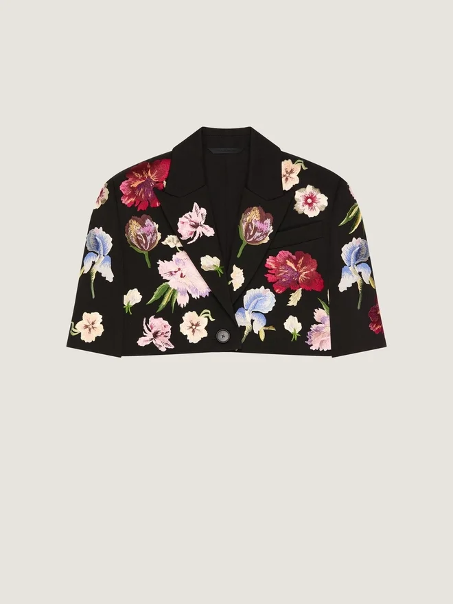 Einreihige, verkürzte Jacke aus Wolle mit Stickereien