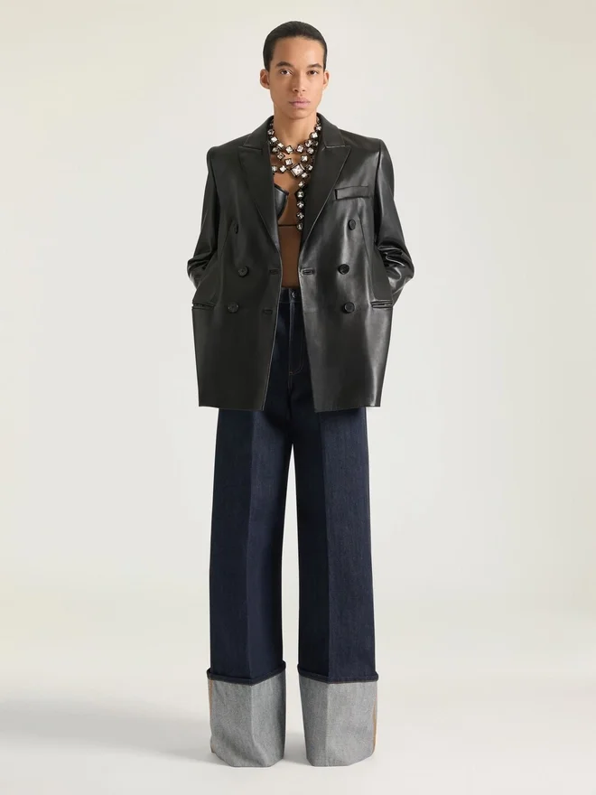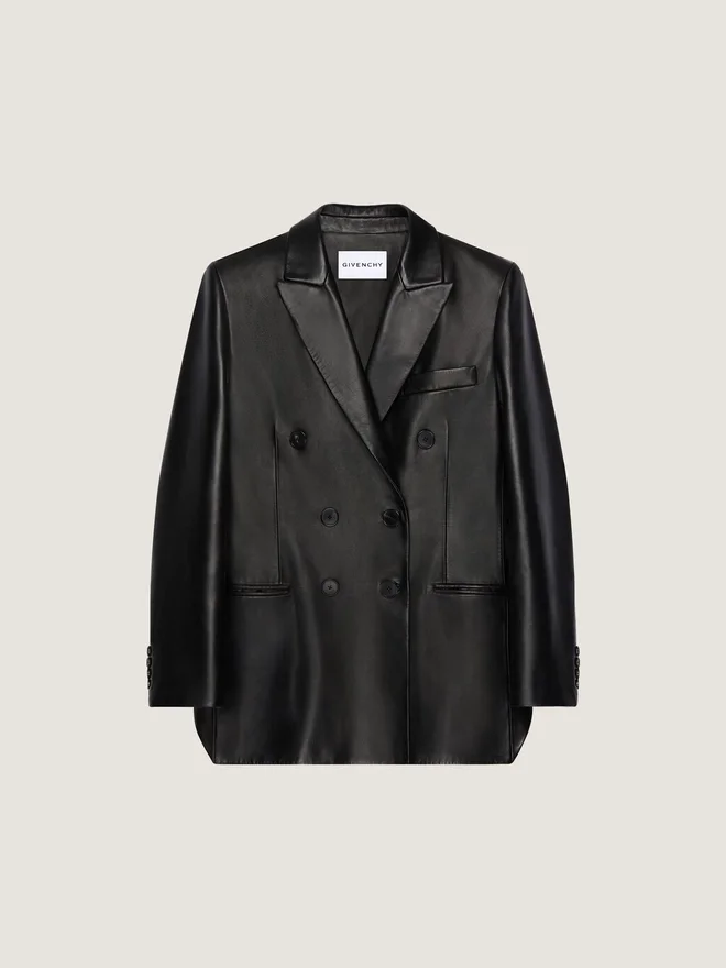 Strukturierte Jacke aus Plonge-Lammleder.Spitzrevers.Schlitz am Rücken.Zweireihig.Geknöpfte Manschetten.Eine Brusttasche.Zwei Vordertaschen.Das Model ist 1,77 m groß und trägt Größe 36.PflegehinweiseNicht waschenNicht bügelnNicht im Wäschetrockner trocknenNicht bleichenNicht chemisch reinigenHerkunftslandItalienProduktcodeBw30Qn604J-001