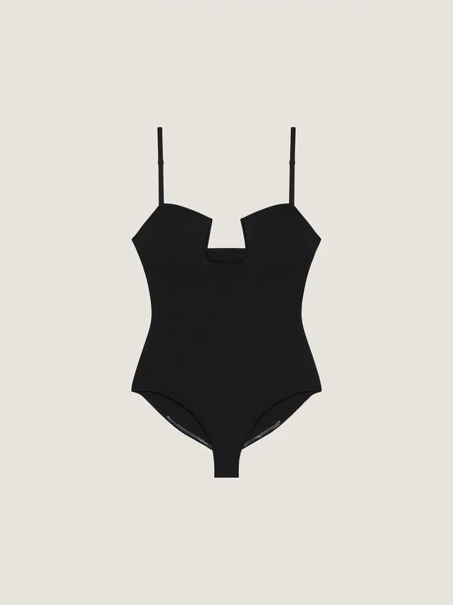 Weiblichkeit und Eleganz kommen durch Leder und Perlenstickereien zum Ausdruck, wobei BHs unter Jacken getragen werden und Cut-out-Details in Maßkonfektion, Kleidern und Strickwaren auftauchen. Cut-out-BHs sind in die Kleidungsstücke integriert, um den Körper zu enthüllen, und erkunden das Wechselspiel zwischen Bekleidetsein und Entkleidetsein. Ärmelloser Bodysuit aus technischem Strick.Cut-out-BH-Detail.Druckknopfverschluss im Schritt. Das Model ist 1,77 m groß und trägt Größe S. Farbe Schwarz Material 84 % Viskose, 16 % Polyester. Zusatzmaterial: 55 % Viskose, 31 % Polypropylen, 10 % Polyester, 3 % Polyamid, 1 % Elasthan.PflegehinweiseNicht waschenNicht bügelnNicht im Wäschetrockner trocknenNicht bleichenChemische Reinigung mit KohlenwasserstoffenHerkunftslandItalienProduktcodeBwb0774Zud-001