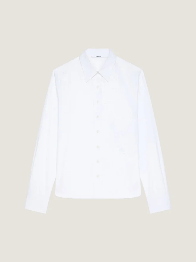 Langärmliges Hemd aus Baumwollpopeline. Klassischer Kragen. Kleiner „Givenchy Paris“-Stick auf der Brust. Knopfverschluss.