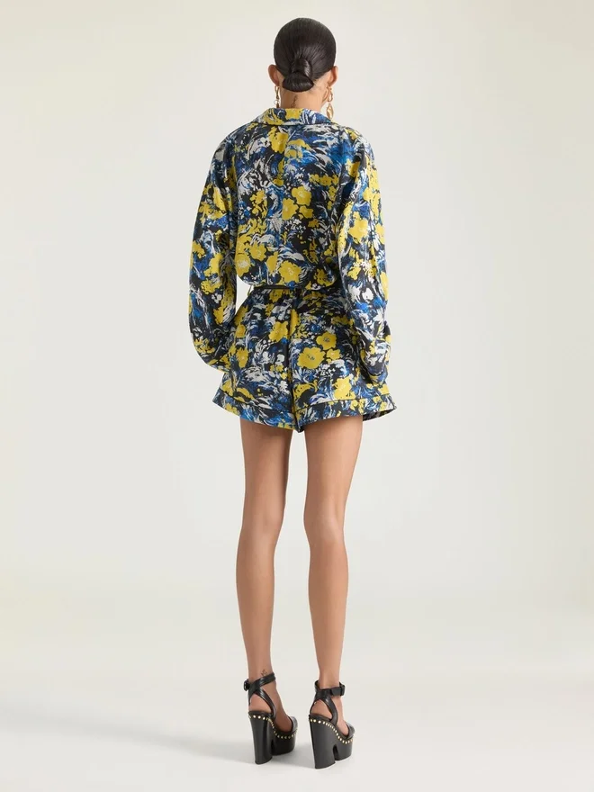 Die Silhouetten sind von blühenden Blumen inspiriert, mit Popelinehemden, die wie Blütenblätter von den Schultern gleiten, und Kleidern, die sich