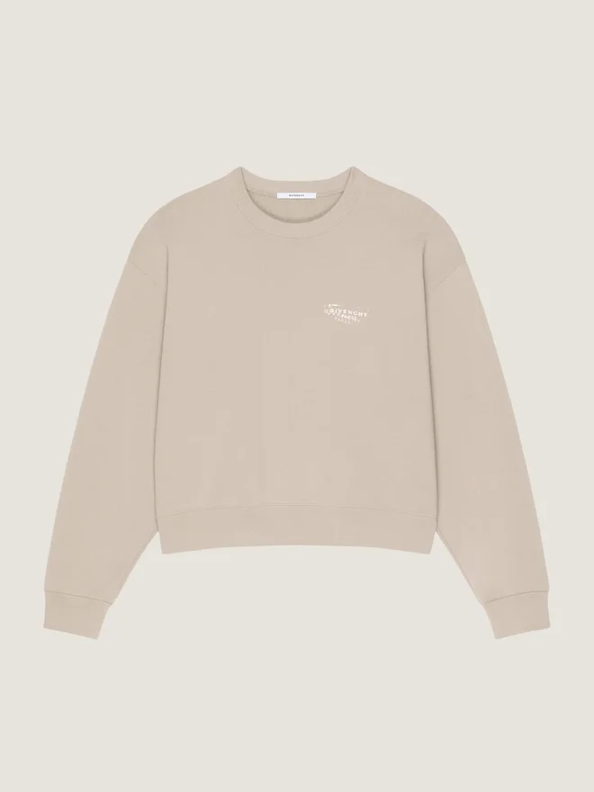 Der Givenchy-Stempel ist ein authentisches Motiv, das von Einladungen zu Haute-Couture-Shows im historischen Hotel Caraman, 3 Avenue George V, dem Pariser Stammhaus von Givenchy, stammt. Langärmliges Sweatshirt aus Fleece. Rundhalsausschnitt. Kleiner Givenchy-Stempel-Print auf der Brust.• Givenchy-Stempel-Print auf dem Rücken. • Gerippter Kragen, Saum und Ärmelbündchen. • Das Model ist 1,77 m groß und trägt Größe S. D FarbeD Beige CappuccinoD MaterialD 100 % BaumwolleD Pflegeanleitung- Sehr schonende Wäsche bei 30 °CBügeln bei maximaler Bügeleisentemperatur (110 °C) Ohne DampfFlach liegend trocknenNicht bleichenNicht chemisch reinigenHerkunftslandPortugalProduktcodeBwj04up7A7-277 Pflegehinweise: In unseren Werkstätten entwerfen wir mutig und kreativ einzigartige Kleidungsstücke, die aus hochwertigen Materialien gefertigt sind. Um die Schönheit Ihres Givenchy-Produkts zu bewahren, empfehlen wir, es in einem Baumwoll-Staubbeutel an einem trockenen, kühlen Ort aufzubewahren. Für die meisten unserer Produkte wird eine chemische Reinigung empfohlen. Bitte beachten Sie unbedingt die Pflegehinweise auf dem Etikett Ihres Artikels. Besuchen Sie gerne unsere spezielle Seite oder wenden Sie sich direkt an unsere Givenchy-Teams, wenn Sie weitere Informationen wünschen.Sehr schonende Wäsche bei 30 °CBügeln bei maximaler Bügeleisentemperatur (110 °C) ohne DampfFlach liegend trocknenNicht bleichenNicht chemisch reinigen