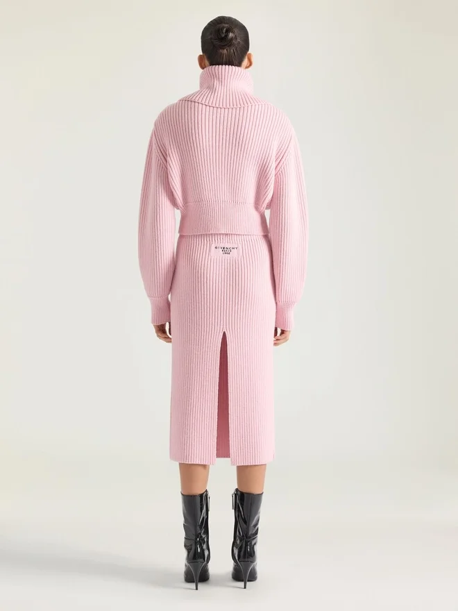 Midi-Bleistiftrock aus Wolle.Elastischer Bund.Aufnäher aus dem gleichen Stoff mit gesticktem „Givenchy Paris 1952“-Schriftzug auf der Rückseite.Schlitz hinten. Das Model ist 1,77 m groß und trägt Größe S. FarbeHellrosaMaterialzusammensetzung79 % Wolle, 18 % Alpaka, 2 % Polyamid, 1 % Elasthan.PflegehinweiseNicht waschenBei maximaler Bügeleisentemperatur (110 °C) ohne Dampf bügelnNicht im Wäschetrockner trocknenNicht bleichenChemische Reinigung mit Perchlorethylen und Kohlenwasserstoffen, SchonwaschgangHerkunftslandItalienProduktcodeBw40Zw4Zsm-681 Pflegehinweise: In unseren Werkstätten entwerfen wir mutig und kreativ einzigartige Kleidungsstücke aus hochwertigen Materialien.Um den Glanz Ihres Givenchy-Produkts zu bewahren, empfehlen wir, es in einem Staubbeutel aus Baumwolle an einem trockenen, kühlen Ort aufzubewahren. Für die meisten unserer Produkte wird eine chemische Reinigung empfohlen. Bitte beachten Sie unbedingt die Pflegehinweise auf dem Etikett Ihres Artikels. Besuchen Sie gerne unsere spezielle Seite oder wenden Sie sich direkt an unsere Givenchy-Teams, wenn Sie weitere Informationen wünschen.Nicht waschenBei maximaler Bügeleisentemperatur (110 °C) ohne Dampf bügelnNicht im Wäschetrockner trocknenNicht bleichenChemische Reinigung mit Perchlorethylen und Kohlenwasserstoffen, Schonprogramm