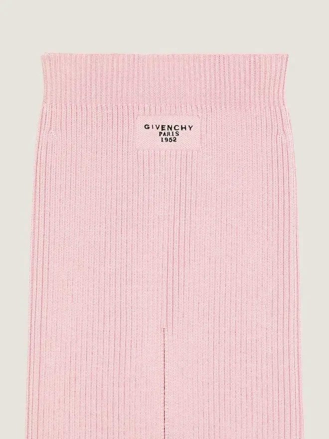 Midi-Bleistiftrock aus Wolle. Elastischer Bund. Aufnäher aus dem gleichen Stoff mit gesticktem „Givenchy Paris 1952“-Schriftzug auf der Rückseite. Rückseite