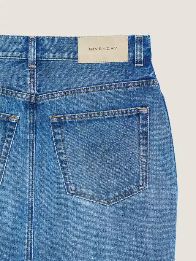• Midi-Hosenrock aus mittelblauem Denim mit Washed-Effekt.• Bund mit Gürtelschlaufen, Reißverschluss und Knopfverschluss.• Knöpfe mit Givenchy-Gravur.• Givenchy-Wildlederaufnäher auf der Rückseite.• Drei Vordertaschen.• Zwei Gesäßtaschen.• Schlitz vorne und hinten. • Unversäuberter Saum mit Washed-Effekt. • Das Model ist 1,77 m groß und trägt Größe 36. D FarbeD D MittelblauD D MaterialD D 100 % Baumwolle.D Pflegehinweise- Waschen bei maximal 30 °C, Schonwaschgang- Bügeln bei maximaler Bügeleisentemperatur (110 °C) Ohne DampfNicht im Wäschetrockner trocknenNicht bleichenChemische Reinigung mit KohlenwasserstoffenHerkunftslandItalienProduktcodeBw412X517Z-420 Pflegehinweise: In unseren Werkstätten entwerfen wir mutig und kreativ einzigartige Kleidungsstücke, die aus hochwertigen Materialien gefertigt sind. Um die Brillanz Ihres Givenchy-Produkts zu bewahren, empfehlen wir, es in einem Staubbeutel aus Baumwolle an einem trockenen, kühlen Ort aufzubewahren. Für die meisten unserer Produkte wird eine chemische Reinigung empfohlen. Bitte beachten Sie unbedingt die Pflegehinweise auf dem Etikett Ihres Artikels. Besuchen Sie gerne unsere spezielle Seite oder wenden Sie sich direkt an unsere Givenchy-Teams, wenn Sie weitere Informationen wünschen.Maximal 30 °C, SchonwaschgangBügeln bei maximaler Bügeleisentemperatur (110 °C) ohne DampfNicht im Wäschetrockner trocknenNicht bleichenChemische Reinigung mit Kohlenwasserstoffen