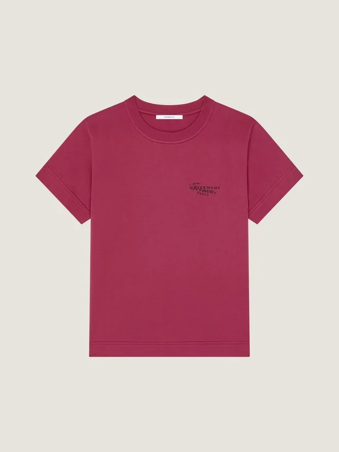 Der Givenchy-Stempel ist ein authentisches Motiv, das von Einladungen zu Haute-Couture-Shows im historischen Hotel Caraman, 3 Avenue George V, dem Pariser Stammhaus von Givenchy, stammt. Kurzärmeliges T-Shirt aus Baumwolle.• Rundhalsausschnitt. • Kleiner Givenchy-Stempel-Print auf der Brust. • Givenchy-Stempel-Print auf dem Rücken. • Das Model ist 1,77 m groß und trägt Größe S.Pflegehinweise- Waschen bei maximal 30 °C, Schonwaschgang- Bügeln bei maximaler Bügeleisentemperatur (110 °C) Ohne DampfNicht im Wäschetrockner trocknenNicht bleichenNicht chemisch reinigenHerkunftslandPortugalProduktcodeBw70Fjp7A7-607 Pflegehinweise: In unseren Werkstätten entwerfen wir mutig und kreativ einzigartige Kleidungsstücke, die aus hochwertigen Materialien gefertigt sind. Um die Schönheit Ihres Givenchy-Produkts zu bewahren, empfehlen wir, es in einem Staubbeutel aus Baumwolle an einem trockenen, kühlen Ort aufzubewahren. Für die meisten unserer Produkte wird eine chemische Reinigung empfohlen. Bitte beachten Sie unbedingt die Pflegehinweise auf dem Etikett Ihres Artikels. Besuchen Sie gerne unsere spezielle Seite oder wenden Sie sich direkt an unsere Givenchy-Teams, wenn Sie weitere Informationen wünschen.Maximal 30 °C, SchonwaschgangBei maximaler Bügeleisentemperatur (110 °C) ohne Dampf bügelnNicht im Wäschetrockner trocknenNicht bleichenNicht chemisch reinigen
