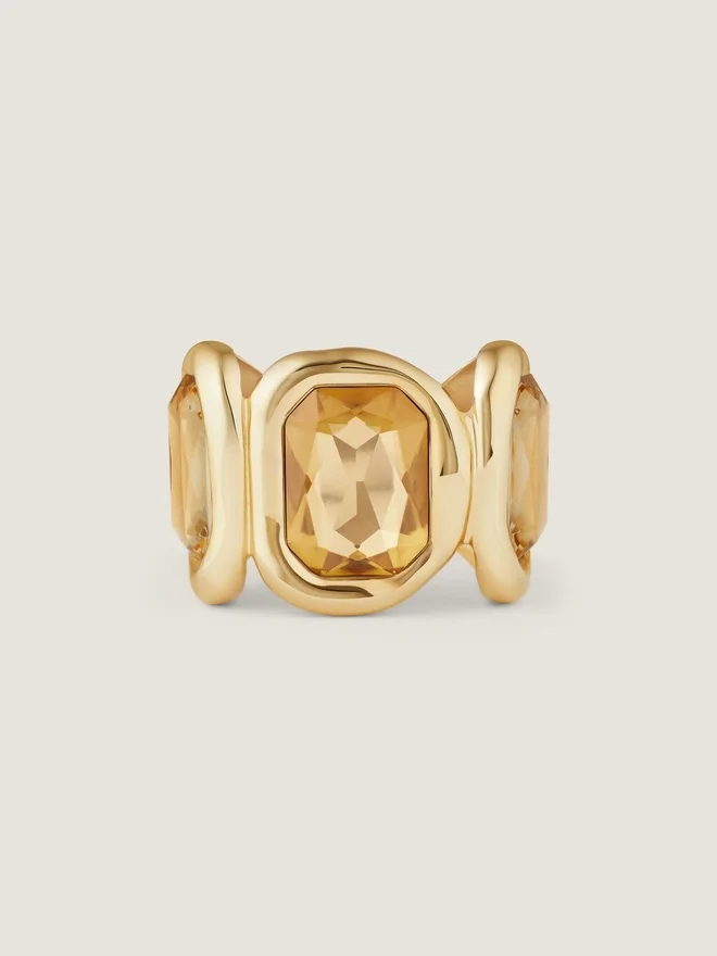 Breites Armreif-Armband aus Metall mit Goldfinish und farbigen Kristallen. Skulpturale Kristallreihe. Givenchy-Signatur auf dem