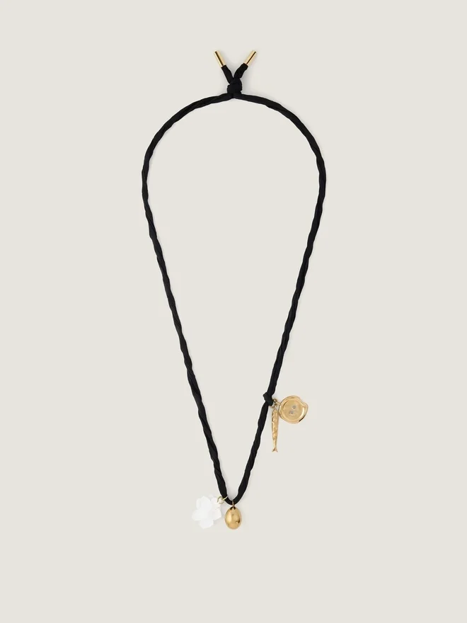 Lucky Charms Halskette aus Seide, Metall und Emaille