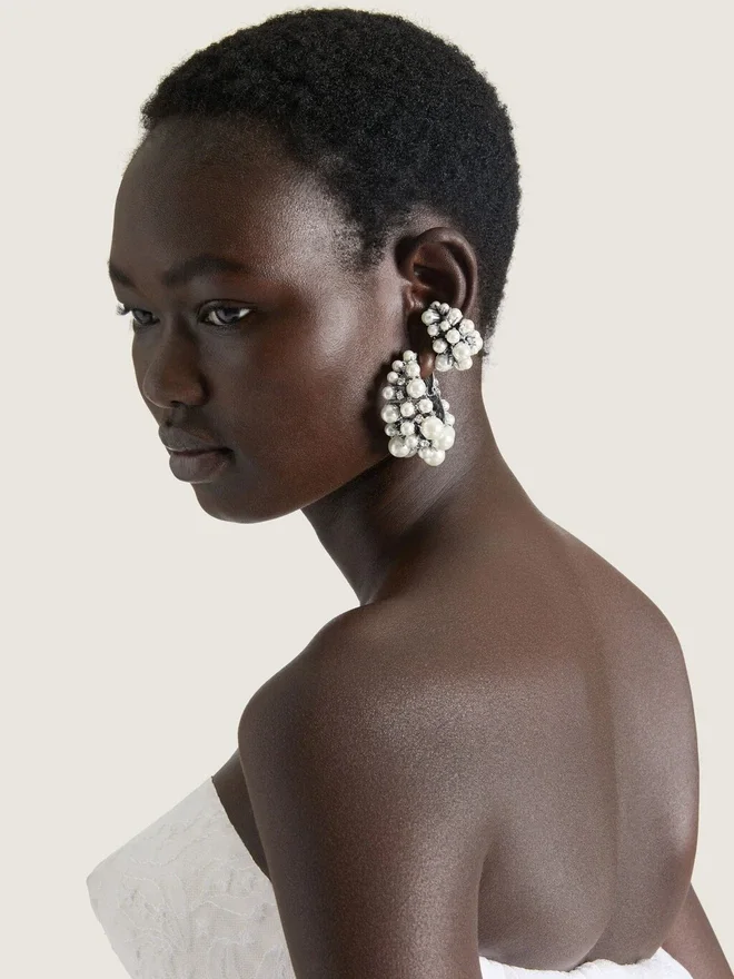 Crystal Pearl Earcuff aus Metall und Perlen