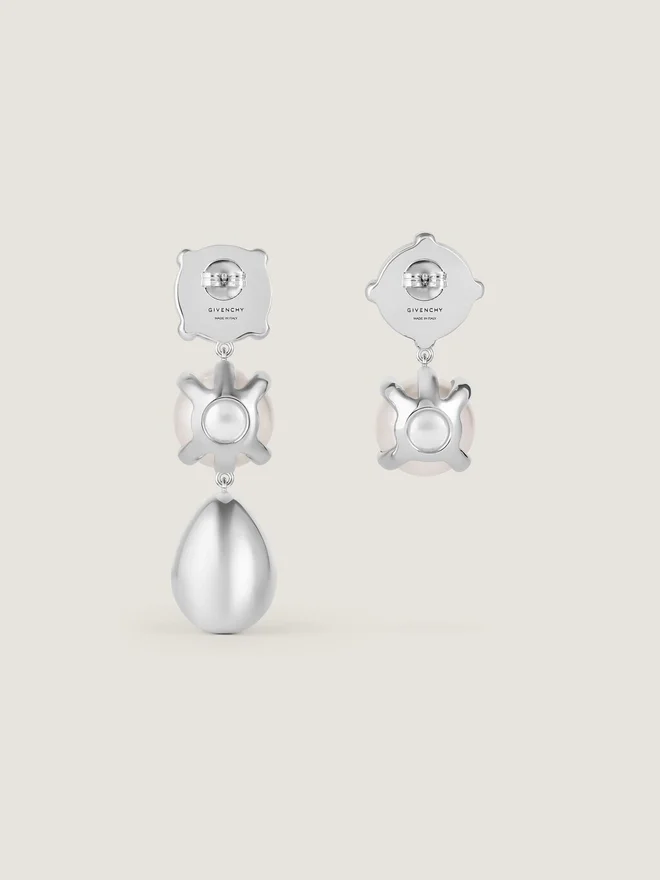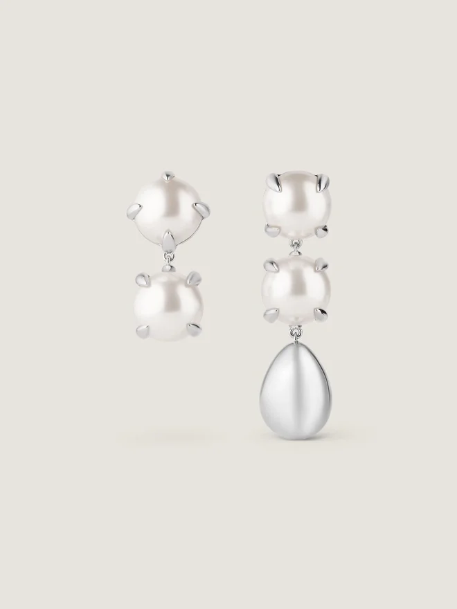 Spitze, asymmetrische Ohrringe aus Metall und Perlen