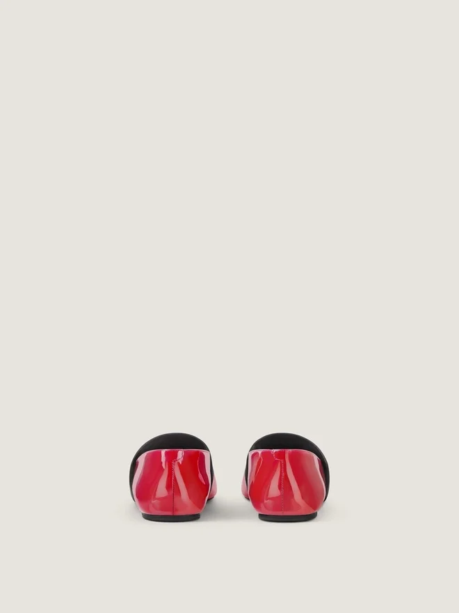 Flache Ballerinas aus lackiertem Kalbsleder. Abgeschrägte, eckige Linie. Elastisches Band mit Givenchy Paris-Lederetikett. Givenchy