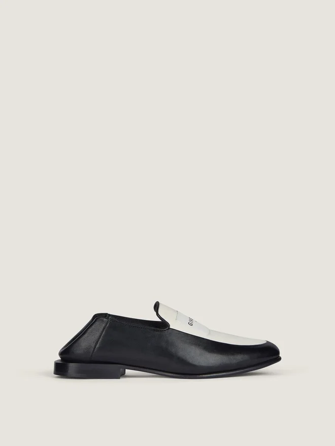 Loafer aus Lammleder und Baumwoll-Canvas.Label-Linie.Aufgesticktes „Givenchy Paris“-Label auf dem Obermaterial.Eingprägtes „Givenchy“-Logo auf der Lederinnensohle.Mandelformige Schuhspitze.Umschlagbar, sodass sie als Hausschuhe getragen werden können.• Wasserabweisendes Stofflabel und leicht waschbar.HerkunftslandItalienProduktcodeBe2028E2Dx-015 PflegehinweiseJedes Paar Schuhe, das in unseren Werkstätten gefertigt wird, ist ein Unikat und besteht aus außergewöhnlichen Materialien. Diese Materialien, die über mehrere Jahre hinweg sorgfältig ausgewählt wurden, erfordern regelmäßige Pflege, damit Sie ihre Schönheit und ihren Komfort über lange Zeit genießen können. Um ihren Glanz zu bewahren, empfehlen wir, sie keiner Hitze oder Lichtquellen auszusetzen und den Kontakt mit Flüssigkeiten oder chemischen Produkten wie Parfüms, Cremes, Haushaltsreinigern usw. zu vermeiden. Wenn Sie Ihre Givenchy-Schuhe nicht tragen, bewahren Sie sie bitte sorgfältig in ihrer Originalverpackung an einem trockenen und kühlen Ort auf. Feuchtigkeit könnte sie beschädigen. Besuchen Sie gerne unsere spezielle Seite oder wenden Sie sich direkt an unser Givenchy-Team, wenn Sie weitere Informationen wünschen.