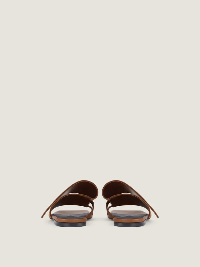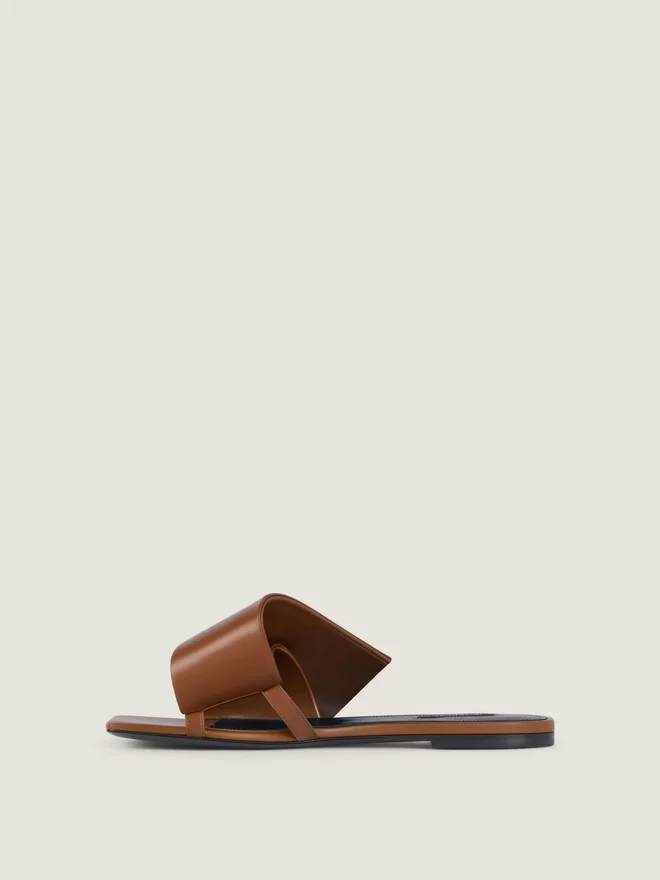 Flache Sandalen aus Leder mit gerader, eckiger Zehenpartie