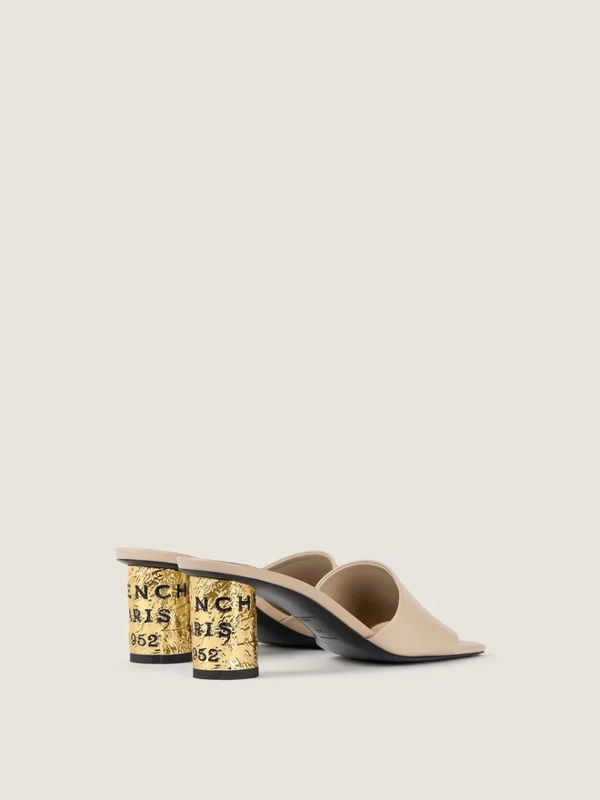 Mules mit Absatz aus Kalbsleder.Tape-Linie.Givenchy-Label auf der Lederinnensohle.Eckige Zehenpartie.Dicker Absatz mit strukturiertem Metall in Goldoptik, verziert mit „Givenchy Paris 1952“ in schwarzem Emaille.Gummipads an der Außensohle zur Rutschsicherung. Absatzhöhe: 6,6 cm. FarbeBeigeMaterialzusammensetzung100 % Kalbsleder. Futter: 100 % Rindsleder.HerkunftslandItalienArtikelnummerBe30Age1J7-250 PflegehinweiseJedes Paar Schuhe, das in unseren Werkstätten gefertigt wird, ist ein Unikat und besteht aus außergewöhnlichen Materialien. Diese Materialien, die über mehrere Jahre hinweg sorgfältig ausgewählt wurden, erfordern regelmäßige Pflege, damit ihre Schönheit und ihr Komfort über lange Zeit erhalten bleiben. Um ihren Glanz zu bewahren, empfehlen wir, sie keiner Hitze oder Lichtquellen auszusetzen und den Kontakt mit Flüssigkeiten oder chemischen Produkten wie Parfüms, Cremes, Haushaltsreinigern usw. zu vermeiden. Wenn Sie Ihre Givenchy-Schuhe nicht tragen, bewahren Sie sie bitte sorgfältig in ihrer Originalverpackung an einem trockenen und kühlen Ort auf. Feuchtigkeit könnte sie beschädigen. Besuchen Sie gerne unsere spezielle Seite oder wenden Sie sich direkt an unser Givenchy-Team, wenn Sie weitere Informationen wünschen.