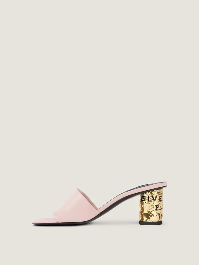 Mules mit Absatz aus Kalbsleder.Tape-Linie.Givenchy-Label auf der Lederinnensohle.Quadratische offene Zehenpartie.Dicker Absatz mit strukturiertem Metall in Goldoptik, verziert mit „Givenchy Paris 1952“ in schwarzem Emaille.Gummipads an der Laufsohle zur Rutschsicherung. Absatzhöhe: 6,6 cm. FarbeSeidenrosaMaterialzusammensetzung100 % Kalbsleder. Futter: 100 % Rindsleder.HerkunftslandItalienArtikelnummerBe30Age1J7-663 PflegehinweiseJedes Paar Schuhe, das in unseren Werkstätten gefertigt wird, ist ein Unikat und besteht aus außergewöhnlichen Materialien. Diese Materialien, die über mehrere Jahre hinweg sorgfältig ausgewählt wurden, erfordern regelmäßige Pflege, damit ihre Schönheit und ihr Komfort über lange Zeit erhalten bleiben. Um ihren Glanz zu bewahren, empfehlen wir, sie keiner Hitze oder Lichtquellen auszusetzen und den Kontakt mit Flüssigkeiten oder chemischen Produkten wie Parfüms, Cremes, Haushaltsreinigern usw. zu vermeiden. Wenn Sie Ihre Givenchy-Schuhe nicht tragen, bewahren Sie sie bitte sorgfältig in ihrer Originalverpackung an einem trockenen und kühlen Ort auf. Feuchtigkeit könnte sie beschädigen. Besuchen Sie gerne unsere spezielle Seite oder wenden Sie sich direkt an unser Givenchy-Team, wenn Sie weitere Informationen wünschen.