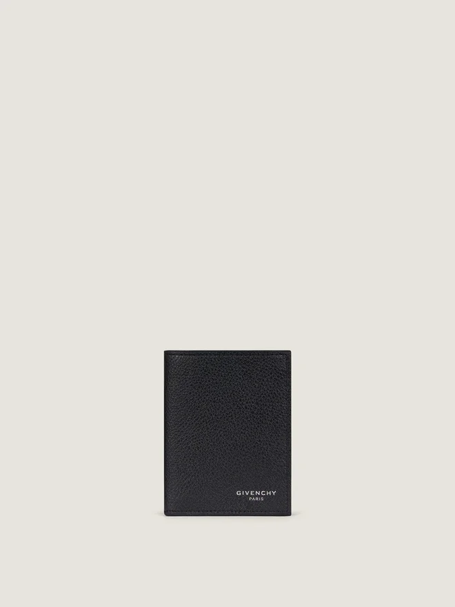 Kartenetui aus genarbtem Kalbsleder. Givenchy Paris-Signatur auf der Vorderseite geprägt. Silberfarbene Givenchy-Signatur auf der Innenseite. Sechs Kartenfächer.