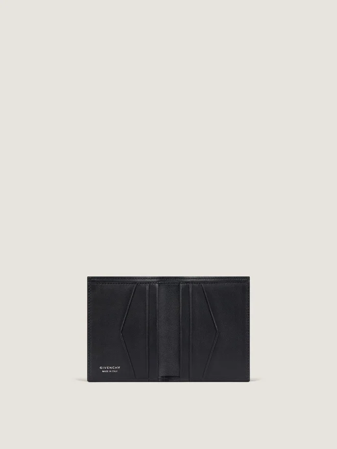 Kartenetui aus genarbtem Kalbsleder.Givenchy Paris-Logo als Prägung auf der Vorderseite.Silberfarbenes Givenchy-Logo auf der Innenseite.Sechs Kartenfächer. Futter: 100 % Viskose.Abmessungen: 3,1 Zoll x 4,3 Zoll x 0,4 ZollHerkunftslandItalienProduktcodeBk608Mk213-001 Pflegehinweise: Leder ist ein empfindliches Naturmaterial, das mit größter Sorgfalt behandelt und gepflegt werden sollte. Jedes Lederprodukt ist ein Unikat und entwickelt mit der Zeit eine Patina, die seine Schönheit und seinen Charakter zum Vorschein bringt. Jede Markierung ist eine zeitlose Erinnerung, die es zu schätzen gilt. Damit Sie lange Freude an Ihrem Givenchy-Produkt haben und dessen Glanz erhalten bleibt, empfehlen wir, es bei Nichtgebrauch in der Originalverpackung an einem trockenen Ort aufzubewahren. Dadurch vermeiden Sie den Kontakt mit Feuchtigkeit, Hitze und/oder Lichtquellen, die das Produkt beschädigen könnten. Vermeiden Sie außerdem den Kontakt mit Wasser, Parfüm, Kosmetika, Feuchtigkeitscremes oder anderen flüssigen Produkten, da diese irreversible Schäden am Leder verursachen können. Besuchen Sie gerne unsere spezielle Seite oder wenden Sie sich direkt an unser Givenchy-Team, wenn Sie weitere Informationen wünschen.