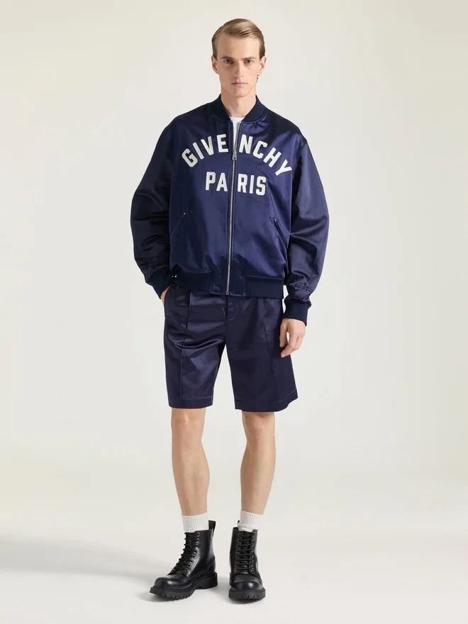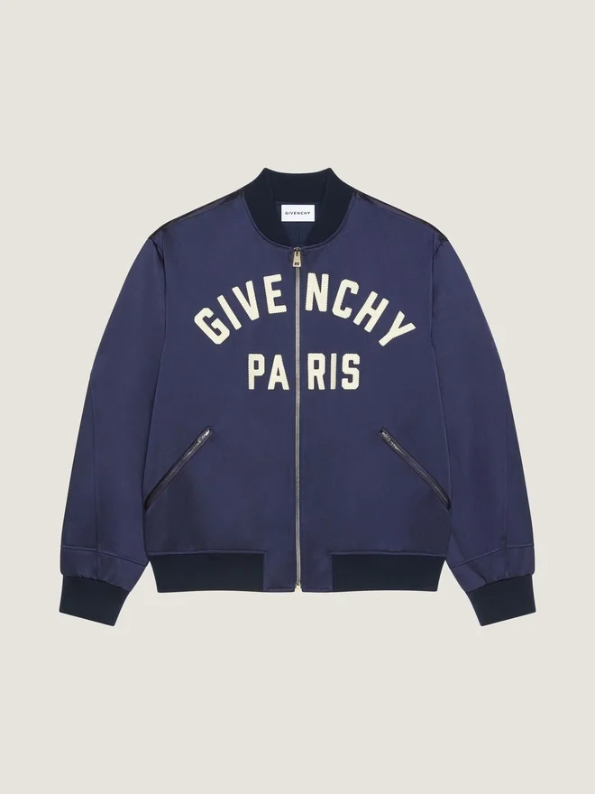 Bomberjacke mit Couture-Naht aus Satin, bestickt mit „Givenchy Paris“