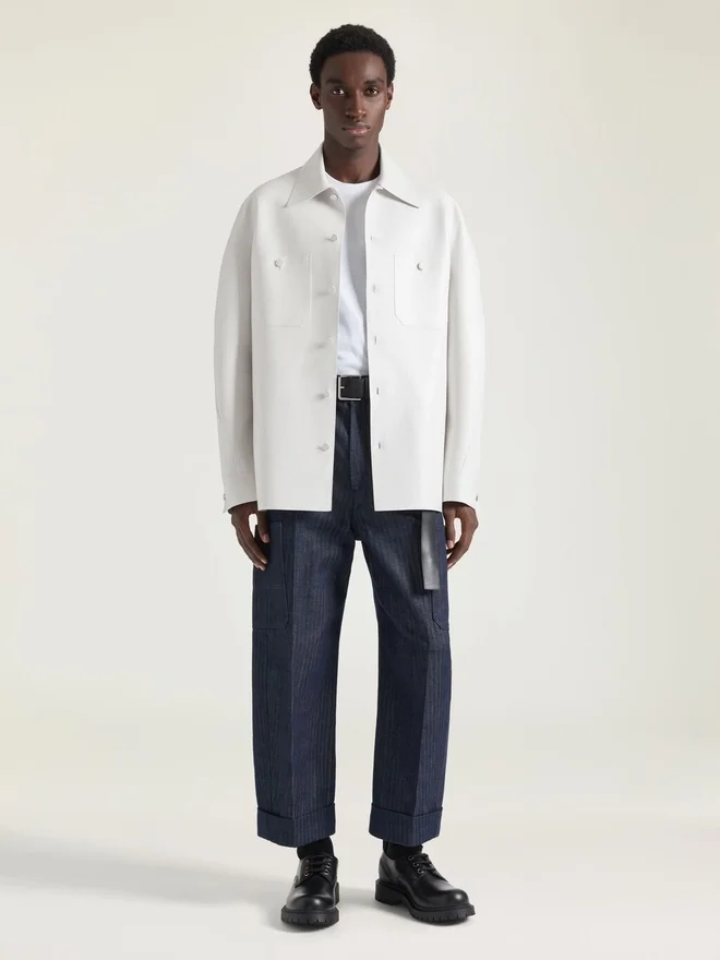 Couture-Overshirt aus Leder mit Nahtverzierung