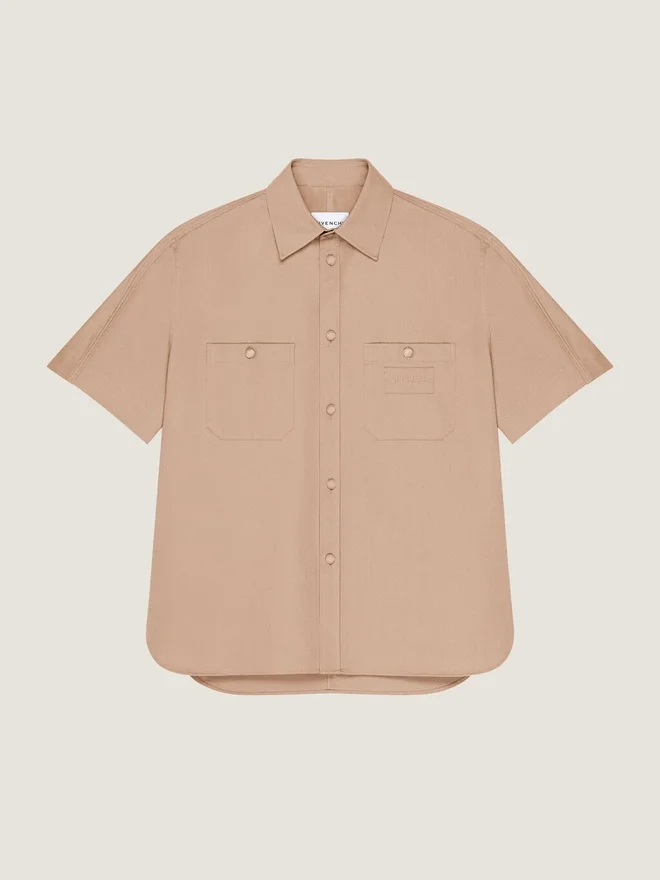 In Anlehnung an das Couture-Erbe von Givenchy ziehen geschwungene, umgekehrte Nähte an Ärmeln und Hosenbeinen verlaufende Linien und schaffen so eine skulpturale Silhouette. Der Givenchy Paris-Schriftzug greift Vintage-College-Referenzen auf und interpretiert klassische Schriftzüge in subtilen, kontrastreichen und gestickten Applikationen neu.Kurzärmeliges Hemd aus Baumwolltwill.Klassischer Kragen.Givenchy Paris-Aufnäher aus dem gleichen Stoff auf der Brust.Knopfverschluss.Zwei Brusttaschen.Couture-Nähte.Locker sitzender Schnitt. Das Model ist 1,85 m groß und trägt Größe M. D FarbeD BeigeD MaterialD 100 % BaumwolleD PflegeD Maximale Waschtemperatur 30 °C, SchonwaschgangBügeln bei maximaler Bügeleisentemperatur (110 °C) ohne DampfNicht im Wäschetrockner trocknenNicht bleichenChemische Reinigung mit Perchlorethylen und Kohlenwasserstoffen, SchonwaschgangHerkunftslandPortugalArtikelnummerBm618315Xz-250 Pflegehinweise: In unseren Ateliers entwerfen wir mutig und kreativ einzigartige Kleidungsstücke aus hochwertigen Materialien.Um den Glanz Ihres Givenchy-Produkts zu bewahren, empfehlen wir, es in einem Staubbeutel aus Baumwolle an einem trockenen, kühlen Ort aufzubewahren. Für die meisten unserer Produkte wird eine chemische Reinigung empfohlen. Bitte beachten Sie unbedingt die Pflegehinweise auf dem Etikett Ihres Artikels. Besuchen Sie gerne unsere spezielle Seite oder wenden Sie sich direkt an unsere Givenchy-Teams, wenn Sie weitere Informationen wünschen.Maximal 30 °C waschen, SchonwaschgangBei maximaler Bügeleisentemperatur (110 °C) ohne Dampf bügelnNicht im Wäschetrockner trocknenNicht bleichenChemische Reinigung mit Perchlorethylen und Kohlenwasserstoffen, Schonwaschgang