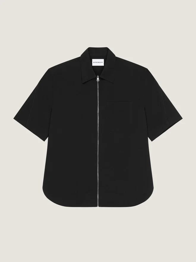 In Anlehnung an das Couture-Erbe von Givenchy zeichnen die geschwungenen, umgekehrten Nähte die Ärmel und Hosenbeine nach und schaffen so eine skulpturale Silhouette.Kurzärmeliges Hemd aus synthetischer Faser. Klassischer Kragen. Farblich abgestimmter Givenchy Paris-Jacquard am oberen Rücken. Reißverschluss. Eine Brusttasche. Paspelierung.Couture-Nähte. Ohne DampfNicht im Wäschetrockner trocknenNicht bleichenChemische Reinigung mit KohlenwasserstoffenHerkunftslandPortugalProduktcodeBm618416E9-001 Pflegehinweise: In unseren Werkstätten entwerfen wir mutig und kreativ einzigartige Kleidungsstücke, die aus hochwertigen Materialien gefertigt sind. Um die Brillanz Ihres Givenchy-Produkts zu bewahren, empfehlen wir, es in einem Staubbeutel aus Baumwolle an einem trockenen, kühlen Ort aufzubewahren. Für die meisten unserer Produkte wird eine chemische Reinigung empfohlen. Bitte befolgen Sie unbedingt die Pflegehinweise auf dem Etikett Ihres Artikels. Besuchen Sie gerne unsere spezielle Seite oder wenden Sie sich direkt an unsere Givenchy-Teams, wenn Sie weitere Informationen wünschen.Nicht waschenBei maximaler Bügeleisentemperatur (110 °C) ohne Dampf bügelnNicht im Wäschetrockner trocknenNicht bleichenChemische Reinigung mit Kohlenwasserstoffen