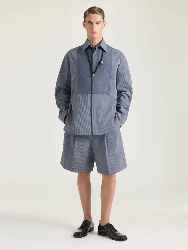 In Anlehnung an das Couture-Erbe von Givenchy ziehen sich geschwungene, umgekehrte Nähte an Ärmeln und Hosenbeinen entlang und schaffen so eine skulpturale Silhouette.Langärmliges kariertes Hemd aus Baumwolle. Klassischer Kragen. Plastron auf der Vorderseite. Kleine Givenchy-Signatur auf der Knopfleiste gestickt. Verdeckter Knopfverschluss. Geknöpfte Manschetten.• Couture-Nähte für eine abgerundete Silhouette. • Lockere Passform. • Das Model ist 1,85 m groß und trägt Größe 39. Farbe Weiß/Blau Material 100 % Baumwolle.PflegehinweiseNicht waschenBei maximaler Bügeleisentemperatur (110 °C) bügeln Ohne DampfNicht im Wäschetrockner trocknenNicht bleichenChemische Reinigung mit KohlenwasserstoffenHerkunftslandPortugalProduktcodeBm617Z16Bg-114 Pflegehinweise: In unseren Werkstätten entwerfen wir mutig und kreativ einzigartige Kleidungsstücke, die aus hochwertigen Materialien gefertigt sind. Um die Schönheit Ihres Givenchy-Produkts zu bewahren, empfehlen wir, es in einem Baumwoll-Staubbeutel an einem trockenen, kühlen Ort aufzubewahren. Für die meisten unserer Produkte wird eine chemische Reinigung empfohlen. Bitte beachten Sie unbedingt die Pflegehinweise auf dem Etikett Ihres Artikels. Besuchen Sie gerne unsere spezielle Seite oder wenden Sie sich direkt an unsere Givenchy-Teams, wenn Sie weitere Informationen wünschen.Nicht waschenBei maximaler Bügeleisentemperatur (110 °C) ohne Dampf bügelnNicht im Wäschetrockner trocknenNicht bleichenChemische Reinigung mit Kohlenwasserstoff