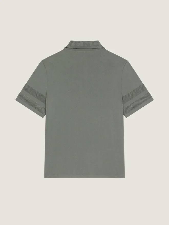Kurzärmeliges Hemd aus Baumwollstrick. Klassischer Kragen. Givenchy-Jacquard am Kragen. Knopfleiste. Perlmuttknöpfe.